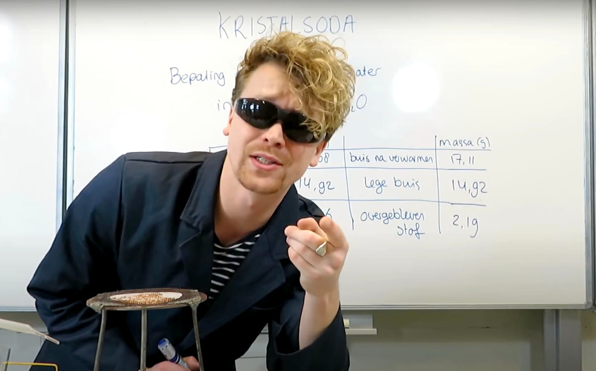 Door het coronavirus wordt er al maanden geen fysiek onderwijs meer gegeven op scholen. Leraren zitten net als hun leerlingen thuis en trekken alles uit de kast om het onderwijs op afstand zo goed mogelijk te laten verlopen. Zo ook Jiry Boltjes, leraar scheikunde op het Visser ’t Hooft Lyceum in Leiden. Om zijn leerlingen te helpen en te motiveren is hij begonnen met YouTube-video’s maken.