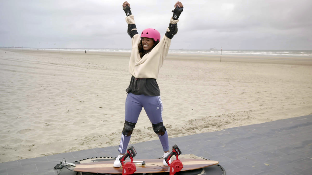 Presentator Sosha Duysker vraagt zich af of je kan surfen op lucht.