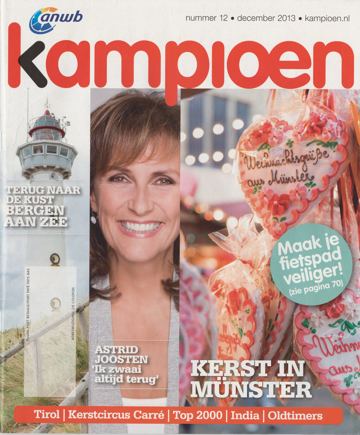 De ANWB bestaat sinds 1883. Het eerste mededelingenblad verscheen in 1884 en dat kreeg een jaar later de naam De Kampioen. Dat komt niet van heel goed kunnen kamperen, wat ik lang dacht, maar betekent voorvechter of verdediger. In dit geval van de fietsersbelangen. Begin jaren zestig veranderde De Kampioen in Kampioen. Een constante in het verenigingsblad zijn de goedgelezen pagina’s met ingezonden brieven. Die worden geselecteerd door Erika van Zinderen Bakker. ‘Er komen honderden brieven en ik kies er ongeveer tien. Ze zijn altijd allemaal te lang. Soms wel meer dan 500 woorden, dus ik kort ze in tot maximaal honderd. Elke maand zit er zeker een mopperbrief in en iets schattigs.’ Door de lange productietijd verschijnt een reactie op een artikel soms pas drie maanden na het betreffende stuk. Dus staat pas in het meinummer de tip om een thermosfles voor gebruik om te spoelen met heet water. ‘Beetje een open deur, maar wel schattig.’ De keren dat er per ongeluk toch een foto van een bestuurder zonder gordel in de Kampioen stond was de rubriek te klein. ‘Ik denk dat onze lezers het wel leuk vinden om een ander de les te lezen.’