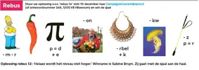 Halfweg • Beste mensen, Hier is weer de rebusoplossing. Net als bij de zegeltjesactie is er weer een opmerking van mij in de VPRO Gids terecht gekomen. Leuk. Nu nog een sjaal. Voor alle zekerheid zet ik mijn adres er maar vast bij.