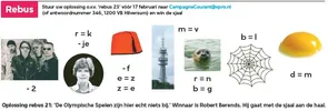 Almere • Rebus #20 was erg leuk. Eindelijk eens opgelost binnen één wc-bezoek. Als de uitzendweek begint, ligt de gids uiteraard in de huiskamer. Maar het is logisch dat die eerst op het toilet direct naast de voordeur ligt. Met twee gidsen in de huiskamer ontstaat onduidelijkheid. Enthousiast een programma aankondigen aan partner, terwijl dat pas een week later te zien is, werkt niet goed. En de week daarna belanden beide gidsen bij het oud papier.