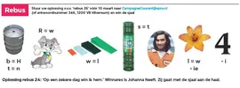 Papendrecht • Iedere week doe ik mijn best om de rebus op te lossen. Nog nooit gelukt! Maar met veel plezier lees ik de post en leef mee. Ik ben een beetje bejaard, heb thuiszorg en toen vanavond de zuster voor mijn steunkousen kwam en een blik op de rebus wierp, dachten wij dat we samen de oplossing hebben gevonden.