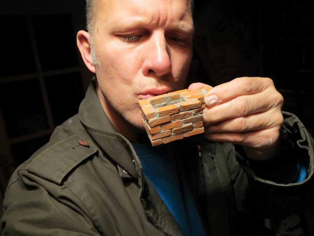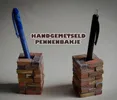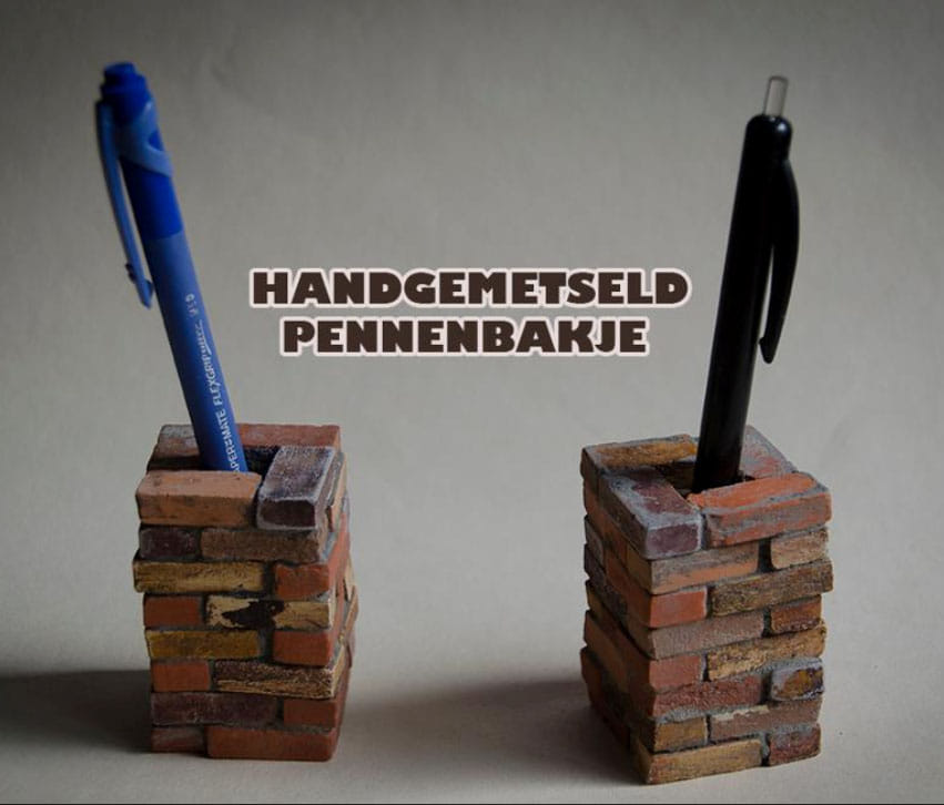 ‘Minibaksteentjes, die heb ik laten bakken bij de Rijswaard in Aalst. Mooie fabriek is dat! Daar zou je eens moeten gaan kijken. Ze zijn van de allerbeste klei en ze mochten daar meeliften op de rug van de grote stenen. Ik had er 20.000 waarvan ik er 500 aan de VPRO heb geleverd. Die hebben van mij allemaal een persoonlijk stempel gekregen met het VPRO-logo. Ik heb nog geen nieuwe bestelling gehad, dus ze zijn nog niet allemaal weg.’