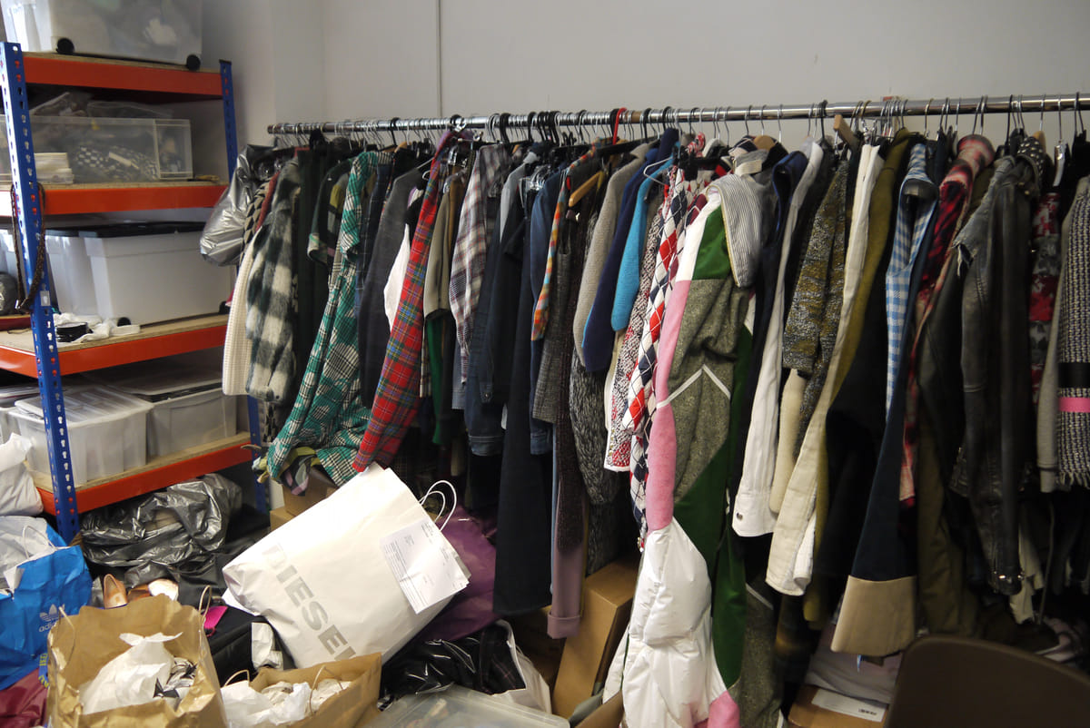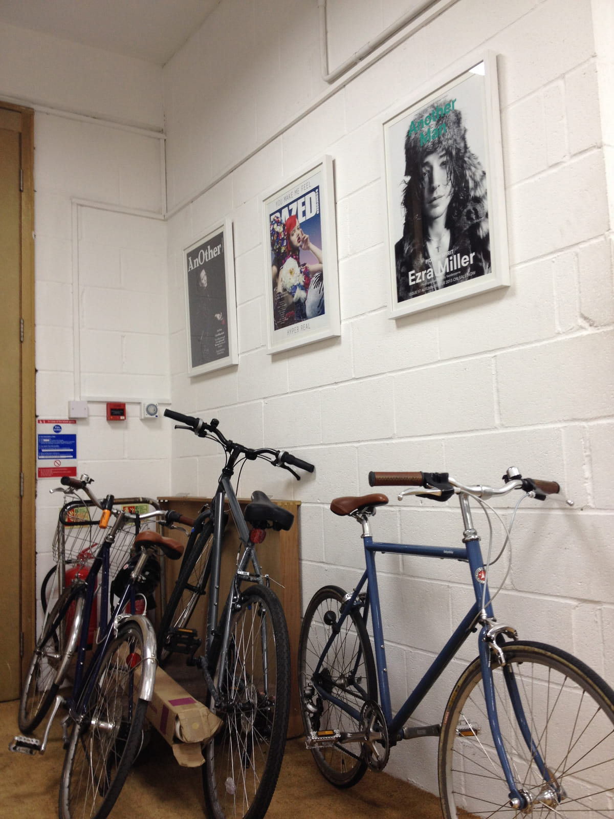 Op naar Londen, waar de redactie in een oude brandweerkazerne huist. Die gaat schuil achter een statig pand met een poort, aan de drukke verkeersader Old Street. Pas als je onder de poort door bent, zie je een groezelige deur met bellenbord waarop Dazed staat – het doet eerder aan als de burelen van een krakersblad dan van een gewichtig mode- en stijltijdschrift. Voor de deur: een flinke hoeveelheid racefietsen. Bij de receptie binnen staan er nog meer, slordig tegen een muurtje geparkeerd. Links van de receptie: een donker hok waarin kleding is ontploft: kleren aan rekken, op stapels, slordig over de vloer, en redacteuren die er druk doende zijn met shoots waar momenteel aan wordt gewerkt. Bij de receptie zit Harry, een raver-achtige jongen in korte broek, T-shirt met krokodillenprint, gympen en petje op. Terwijl we een kwartier lang wachten op hoofdredacteur Tim Noakes en digital editor Charlie Robin Jones met wie we een gesprek hebben, neemt Harry om de twee minuten pakketten van koeriers aan – spul van merken als Paul Smith, dat Harry achteloos naast zich neer smijt. De telefoon gaat. ‘Hi, I’ve got Prada,’ verbindt hij door. Ondertussen gaan er redacteuren voorbij die buiten roken, op afgetrapte gympen, plateauzolen, Dr. Martens of blote voeten met zwart gelakte nagels.