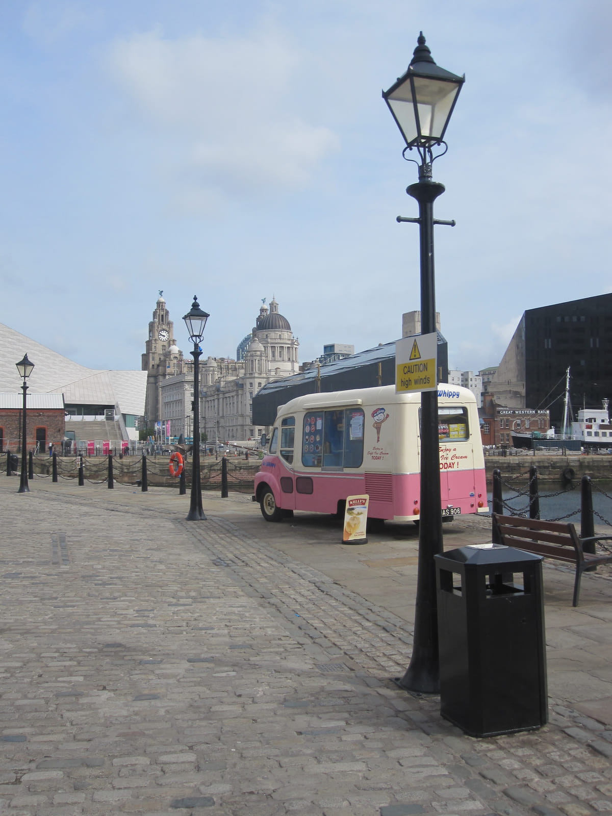 Op een van de laatste junidagen van het jaar giert een kille wind over de kades van de stad, begeleid door dichte gordijnen van regen. Ian Wray laat zich door deze Engelse zomerdag niet ontmoedigen. Zonder paraplu arriveert hij bij de ingang van de Tate Gallery. Deze kleine professor zal me rondleiden door de zes gebieden in het centrum van de stad die tezamen Liverpools werelderfgoed vormen. Dat een gids noodzakelijk is, blijkt al snel, want hoe trots de stad ook zegt te zijn op haar werelderfgoedstatus, bewegwijzering ontbreekt volledig. Nergens staat aangegeven wat nu tot het werelderfgoed behoort en wat niet. Professor Wray, die zowel geograaf als planoloog is, en ook nog eens voorzitter van de stuurgroep Werelderfgoed Liverpool, noemt dat ‘ongelofelijk frustrerend’. Onze gids is vermoedelijk een van de weinige inwoners van de stad die precies weten waar de onzichtbare grenzen lopen en hij zet er flink de pas in, want de verschillende World Heritage Sites grenzen niet aan elkaar.