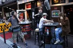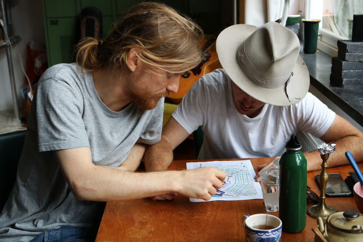 Louis en Ryan lijken hier geen enkel probleem mee te hebben. Ze vertelden me dat ze gemiddeld rond de tachtig euro per dag per persoon ophalen en in vakanties en weekenden soms bedragen oplopend tot honderdvijftig euro - afhankelijk van het weer en de hoeveelheid toeristen natuurlijk. Hier zit echter ook de verkoop van hun cd's bij, die het erg goed doen bij hun publiek.