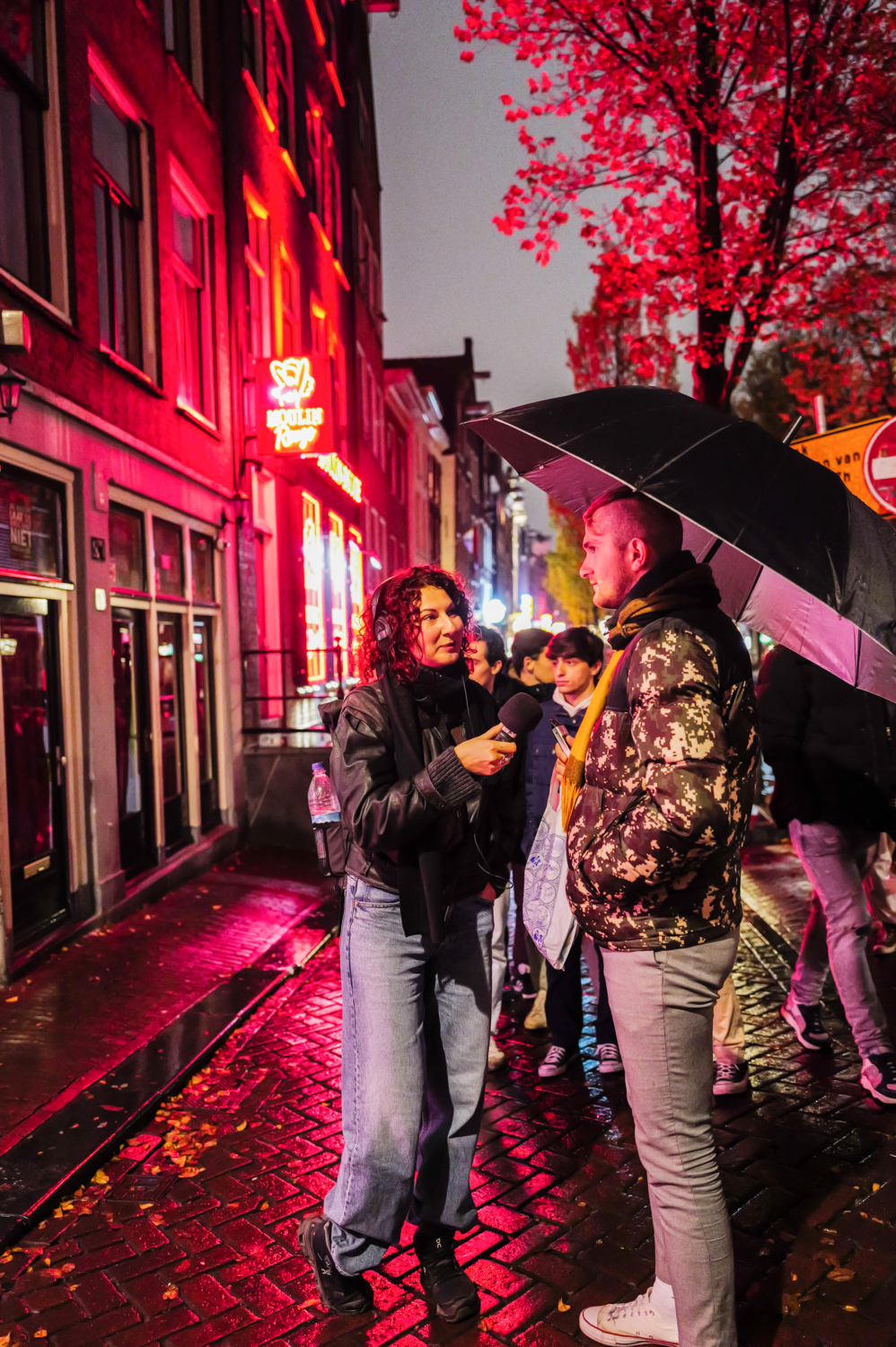 ‘Marcello!’ roept Naomi Steijger. ‘Hoe gaat het?’ ‘Nu ik jou zie, gaat het heel goed,’ antwoordt de boomlange portier van sekstheater Casa Rosso. ‘Geef me een brasa.’ Na een enthousiaste omhelzing lopen we verder over de Amsterdamse Oudezijds Achterburgwal, midden in de rosse buurt. ‘Die seksshops vind ik ook geweldig,’ zegt ze om zich heen wijzend. ‘Wat voor pakjes ze daar allemaal verkopen! Ik blijf me verwonderen in deze buurt.’ Tegelijkertijd voelt ze zich er helemaal thuis. Eén avond per week zit ze achter de kassa van het Erotic Museum, een paar deuren verderop. Daar verkoopt ze kaartjes aan toeristen die de expositie bekijken van bijzondere seksobjecten en kunst met erotisch thema. Ook bestiert ze een kast met condooms en andere benodigdheden voor de sekswerkers in de buurt. Als het rustig is, komen buurtgenoten kletsen bij haar kassahokje. Ze weten inmiddels dat Steijger dan altijd haar recorder bij zich heeft. ‘Het begon uit financiële noodzaak,’ vertelt ze. ‘Maar ik heb wel bewust gekozen voor een bijbaan op een plek waar ik nog niets vanaf wist.’