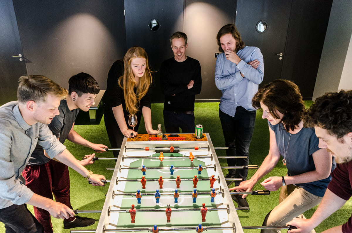‘Ken je dat, dat je thuis heel zelfverzekerd bent, maar dan toch ineens zenuwachtig wordt als je je werk moet laten horen?’ grinnikt Tom Hofland. Iedereen kent dat, want in de vergaderruimte ‘Het klokhuis’ in het Mediapark in Hilversum zitten ze allemaal in hetzelfde schuitje.