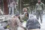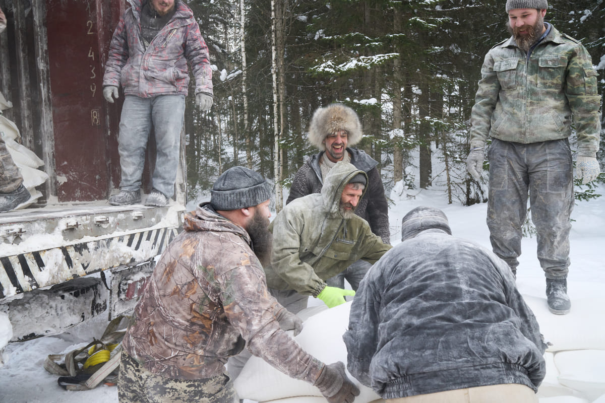 'Zoals deze scène. Een chauffeur was dronken gaan rijden - dat gebeurt in Siberië tenslotte wel vaker - en had zo zijn vrachtwagen van de weg gereden. Plots waren daar allemaal baardmannen, die net uit het Oude Testament leken gekomen, om die vrachtwagen leeg te halen, terug op de weg te zetten en weer te vullen. En ondertussen kwamen ze helemaal onder te zitten: niet met sneeuw of ijs, maar met meel. Vandaar ook dat iedereen wit bepoederd is. Een hele grappige situatie en een mooie verrassing.'