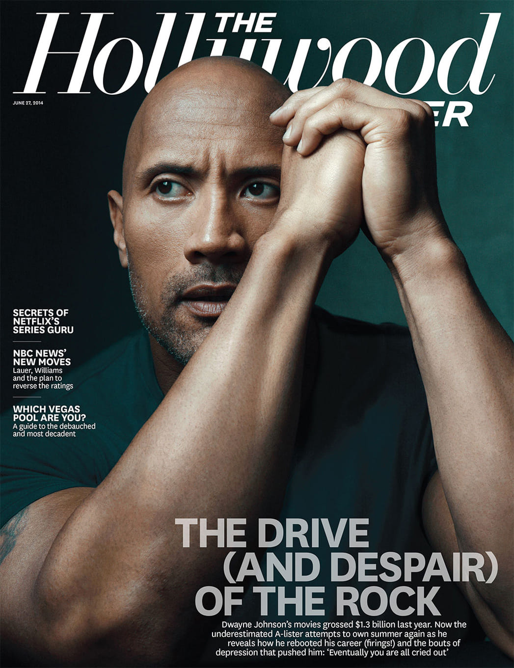 Om zijn betoog te illustreren verdwijnt Galloway naar de lobby, waar de laatste nummers van de Reporter staan uitgestald naast andere publicaties van Guggenheim Media, zoals Adweek en Billboard. Hij komt terug met een verhaal dat hij zelf onlangs heeft geschreven: een profiel van ex-worstelaar, filmster en zakenman Dwayne ‘The Rock’ Johnson. Galloway zocht hem op in Australië, trainde met hem in de sportschool, en schreef een reportage die je ook zou kunnen aantreffen in de Vanity Fair of het magazine van de New York Times. ‘Vroeger had ik een verhaal geschreven over zijn business-imperium,’ zegt Galloway. ‘Nu lees je ook wie hij is. We brengen dezelfde informatie, maar we doen er een schepje suiker bij.’