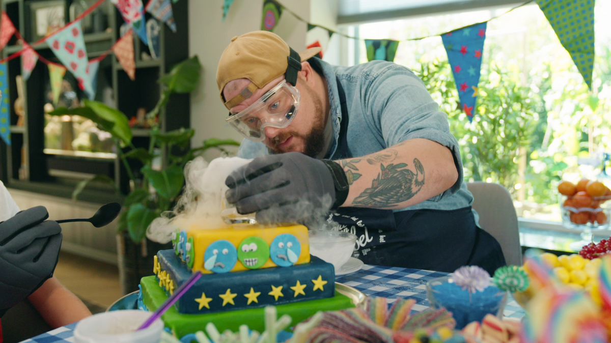 Emir maakt een bijna niet te tillen taart voor Valesca. Hij moest met zijn familie uit Turkije vluchten en kwam na een lange spannende tocht uiteindelijk in Nederland terecht. Het was best lastig en eenzaam om helemaal opnieuw te beginnen in een land waar je de taal en de weg niet kent. Valesca zorgde voor een zachtere landing. Later wil Emir wetenschapper of astronaut worden. Vooral kernfysica vindt hij super interessant.