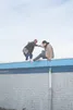 Dan weer rent er een meisje plagend achter een van de jongens aan. Ik schenk mezelf nog maar wat bij en ga als het laatste bierblikje leeg is weer naar binnen. Daar val ik op de vloer in slaap.