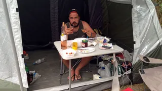 Maar ook de Waalse gezinnen tegenover en naast ons blijken hun eigen maal te bereiden. Is dat toeval? Een kleine ronde over de camping leert van niet. Bijna iedereen is bezig op een gasstel bij de tent of de caravan. Zelfs de man met de hoed is met een pannetje in de weer.