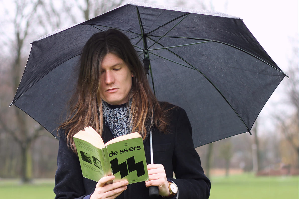 Het was moeilijk kiezen met welk boek hij op de foto wilde. Het werd De SS’ers, ook van Armando en Sleutelaar. ‘Dit is een van de beste Nederlandse boeken ooit. Het zijn full quote interviews met SS’ers. Ze beginnen met een gematigde SS’er, dan denk je nog: ik begrijp het wel. De volgende is net een stapje erger. Op het einde zit je met iemand die net niet zegt dat-ie zelf joden heeft vergast. Je bent zo gekneed door de loop van dat boek heen. Je krijgt steeds meer begrip voor het monster. Dat is waanzinnig. De opbouw van het boek maakt het verhaal. Hierdoor zie je dat boeken gevaarlijk kunnen zijn, ze kunnen je veranderen. Heel subtiel, op een niet subtiele manier gedaan.’