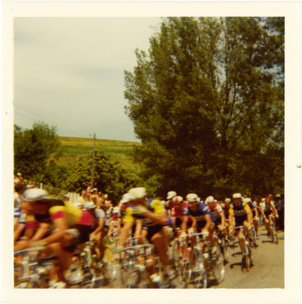 De Tour de France kwam in de buurt van de camping. Ik mocht de foto’s maken. Door de zoeker van het Kodaktoestel zocht ik naar Nederlandse renners en de gele trui. Het lukte niet goed. We gingen weer terug. In het begin van de avond was het nog heet. Het meisje met de pleister zat nog steeds langs de rivier. Tijdens het zwemmen kon ik mijn ogen niet van haar knie afhouden.