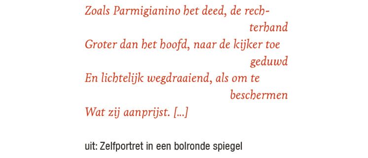 Dat ‘om te beschermen wat zij aanprijst’ is in betrekking tot Ashbery’s werk een wezenlijke zin. Zijn poëzie zit eivol met persoonlijke details en bevat tal van autobiografi sche elementen. Het zijn er alleen zo veel en ze zijn doorgaans dermate gecodeerd dat de ervaring van de lezer precies tegengesteld is; de paradox is dat Ashbery’s poëzie zo vol van het persoonlijke is dat zij onpersoonlijk overkomt. Dat komt ook omdat Ashbery een ingenieus spel met de persoonsvormen speelt. Valt de ik-figuur samen met Ashbery of niet? Wordt met de jij wellicht ook Ashbery aangesproken of juist de lezer of geen van beiden? En wie heeft Ashbery op het oog als hij het heeft over wij? Wie van Ashbery’s poëzie wil genieten, moet accepteren dat hij veel niet begrijpt en dat een vertrouwde logica in dit geval weinig houvast biedt. Ashbery is per definitie grillig. Hij kiest vaak een andere vorm, heeft gedichten van enkele regels en van honderden pagina’s geschreven. Sonnetten, prozagedichten, collages, vertalingen, van alles vindt zijn weg in zijn oeuvre. Hij is een gretige en expansieve dichter, weinig lijkt voor hem veilig. Zijn werk intrigeert velen, zoals het ook velen irriteert. Ashbery’s gedichten confronteren op een zachtaardige manier met het eigen tekort. Het zijn dikwijls geestige gedichten die, hoeveel stemmen er ook uit mogen opklinken, altijd onmiskenbaar Ashbery zijn.