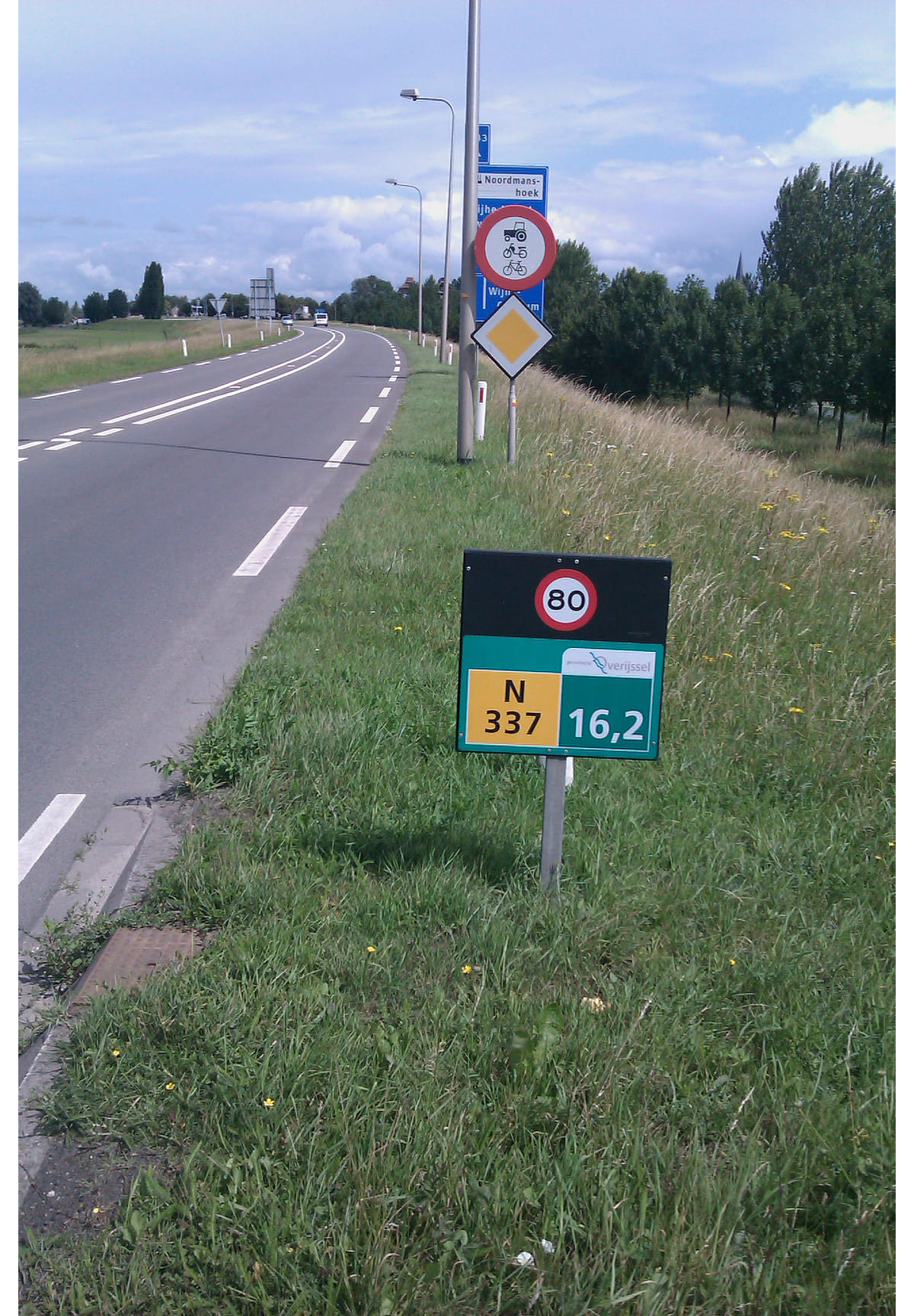 De N337 bij het Overijsselse Wijhe. Rechts de IJssel. Ter hoogte van hectometerpaaltje 16,2 werd aan de oever van de rivier in juni 2005 een linkeronderbeen gevonden, gehuld in een chocoladebruine Nike-sok. Voor het boek liep ik twee jaar geleden vanaf hier terug naar de plaats waar het been in januari 2005 voor het laatst in leven werd gezien: driehonderd kilometer stroomopwaarts, in Düsseldorf.