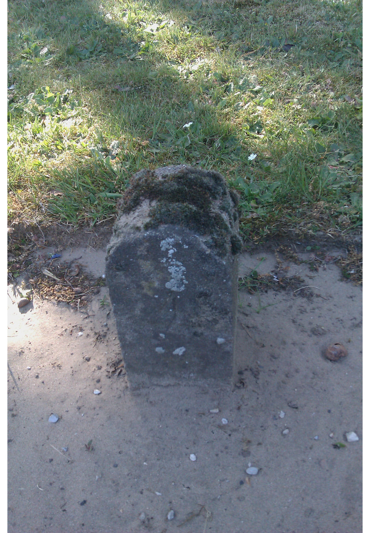 Het paaltje in rij Z dat het anonieme graf markeert op de openbare begraafplaats van Den Nul (in Wijhe was geen plaats), waar het been in een kinderkistje ligt begraven.