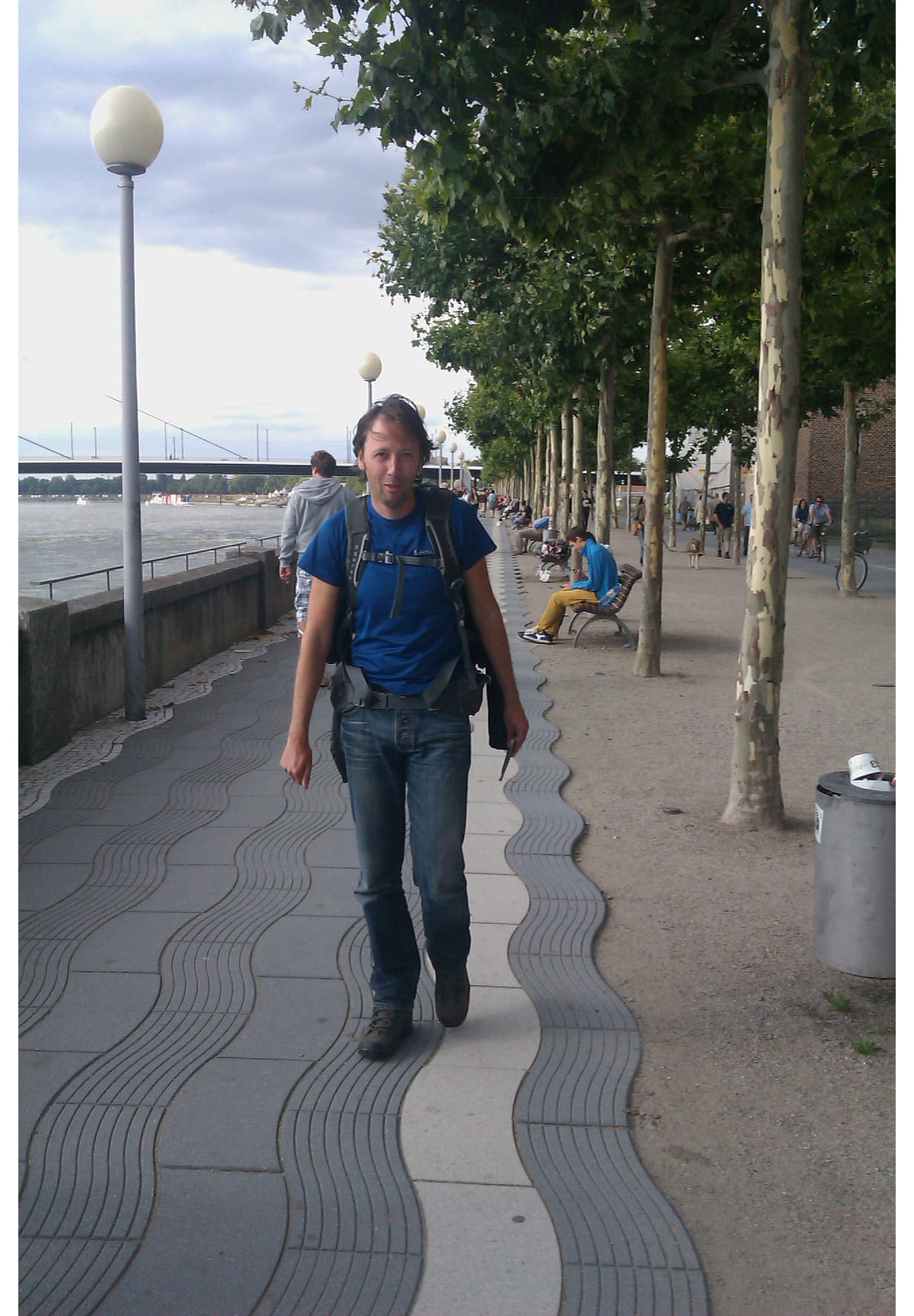 Over de eindeloze Rotterdammerstraße loop ik Düsseldorf binnen. Langs de moderne gebouwen van de Messe. Hier stond Hensel achter zijn kraam, waar hij zo verdienstelijk sprak over het reddingsvest uit de 275 N Klasse. Hier dreef kort of lang daarna zijn lichaam of zijn been voorbij.