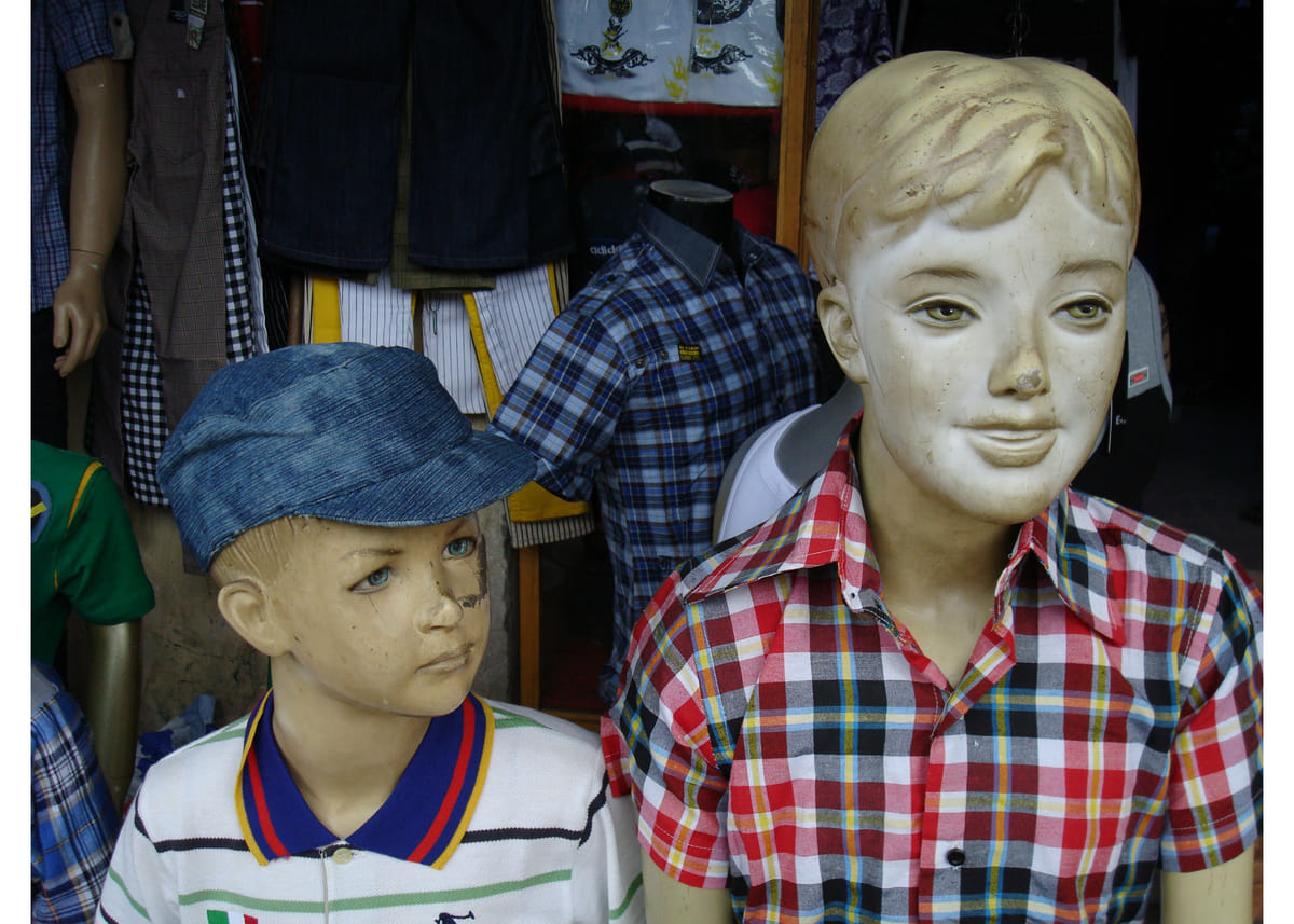 Brazzaville – De etalagepoppen in Cheikhna’s winkel hebben, behalve blauwe ogen en blonde haren, een Chinese glimlach. Sommige hebben gekneusde neuzen, andere geschaafde wangen, maar hun enigmatische glimlach is intact. Het is alsof ze staan te grijnzen om dat westerse uiterlijk van ze, terwijl ze eigenlijk Chinees zijn.