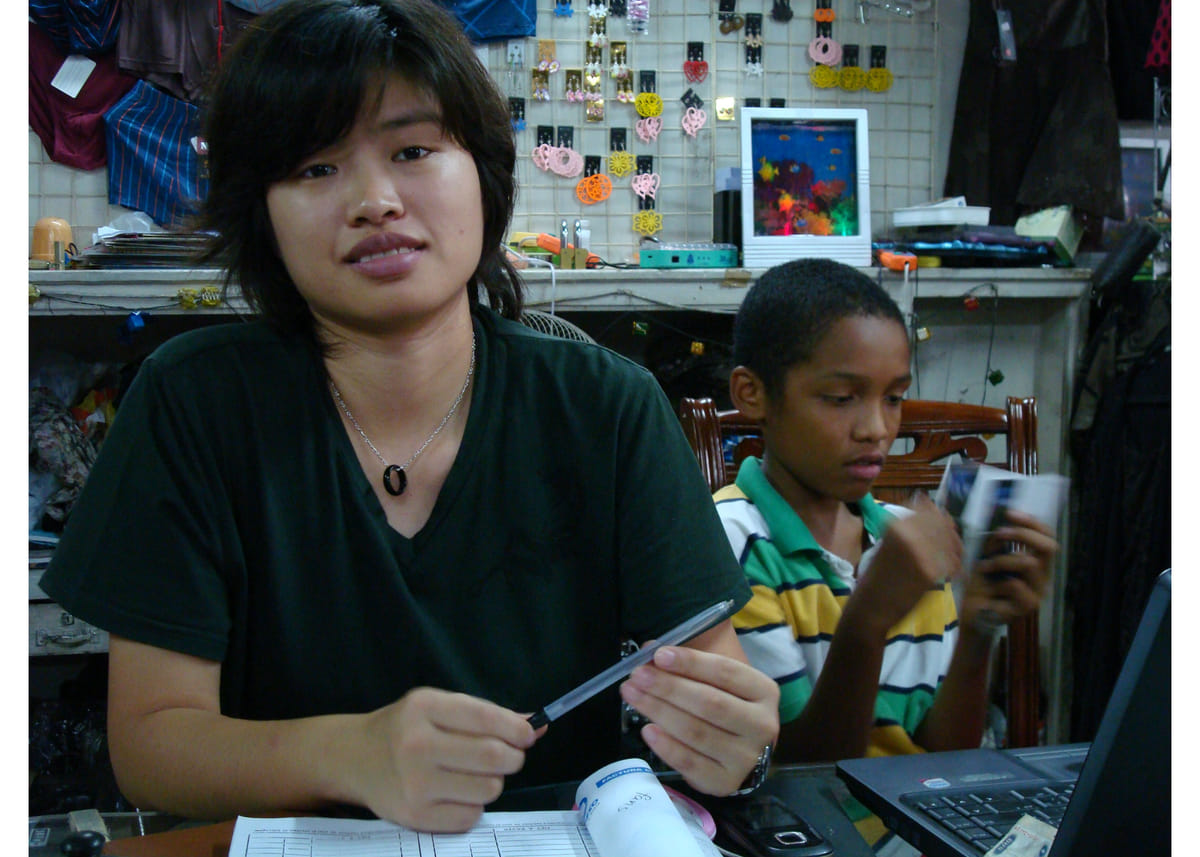 Brazzaville – Ik tref schoenverkoper Sekou achter zijn kassa, onder twee kale peertjes die in vol daglicht branden. Hij heeft zijn winkelvergunning op de muur geplakt en verder is het al damesschoen wat het oog ontmoet. Sekou heeft drie jaar in Thailand gewoond. ‘De Thai werken niet de hele tijd, zoals de Chinezen,’ zegt hij. ‘Nee, de Chinezen – ik weet niet waar die voor leven, want ze werken alleen maar, van ’s ochtends tot ’s avonds en in het weekend ook nog.’