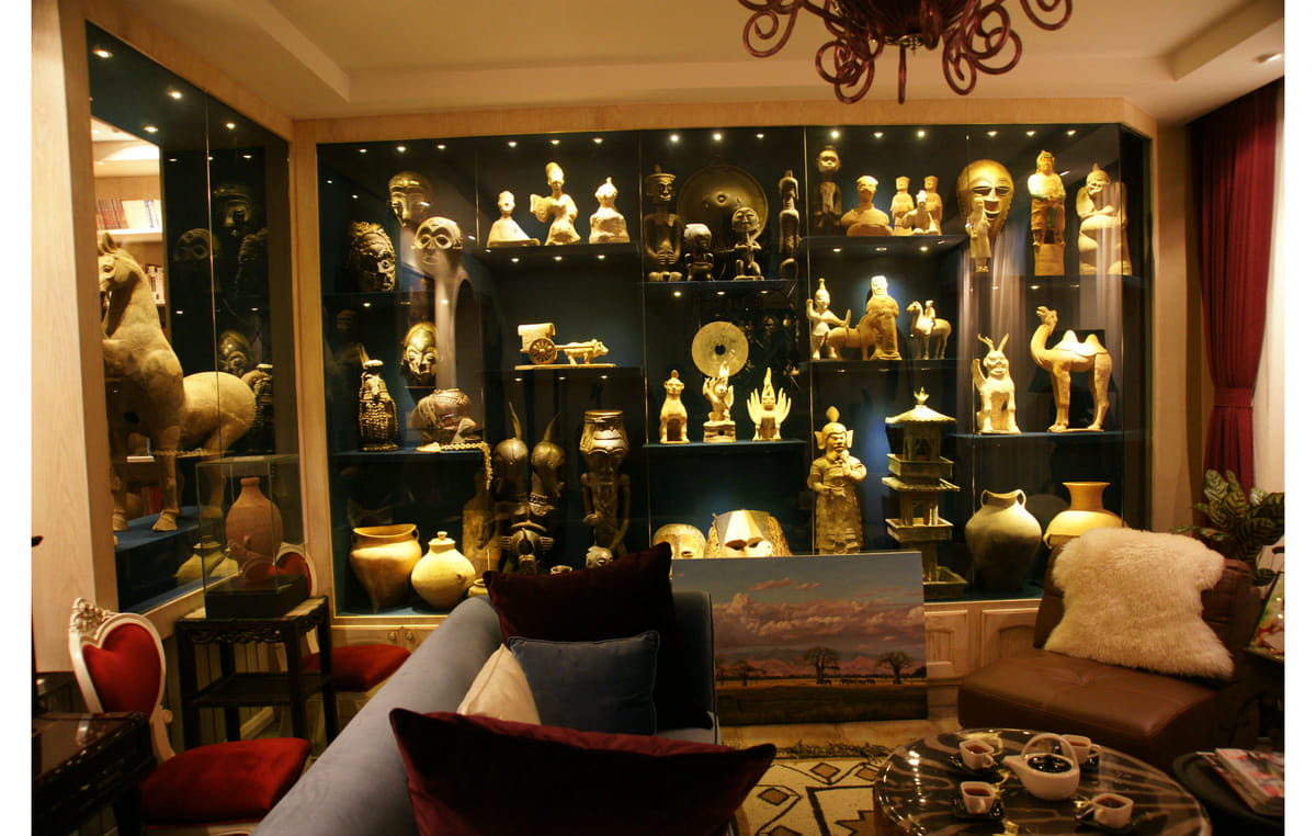 Beijing – Guo Dongs huis is ingericht als een museum, met vitrinewanden waarachter zijn kunstverzameling beschenen wordt door zacht licht. Een lemen paard met een Chinese ruiter, Afrikaanse maskers en vruchtbaarheidsbeelden – alles staat door elkaar en het is niet altijd meteen duidelijk wat nu Chinees is en wat Afrikaans.