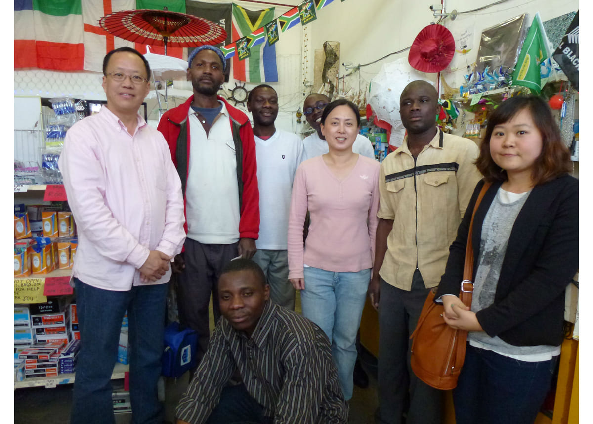 Durban – ‘Kijk eens wat slim.’ Shudi staat stil bij een jonge straatverkoper die een dertigtal fluorescerende horloges op een kartonnen buis heeft geschoven. Waar komt hij vandaan – uit Mozambique? Broederlijk slaat Shudi een arm om hem heen. ‘Ik ben net zo begonnen als jij.’ De jongen lacht naar de grote Chinees met zijn safaripetje en zonnebril – alsof die een grapje maakt.