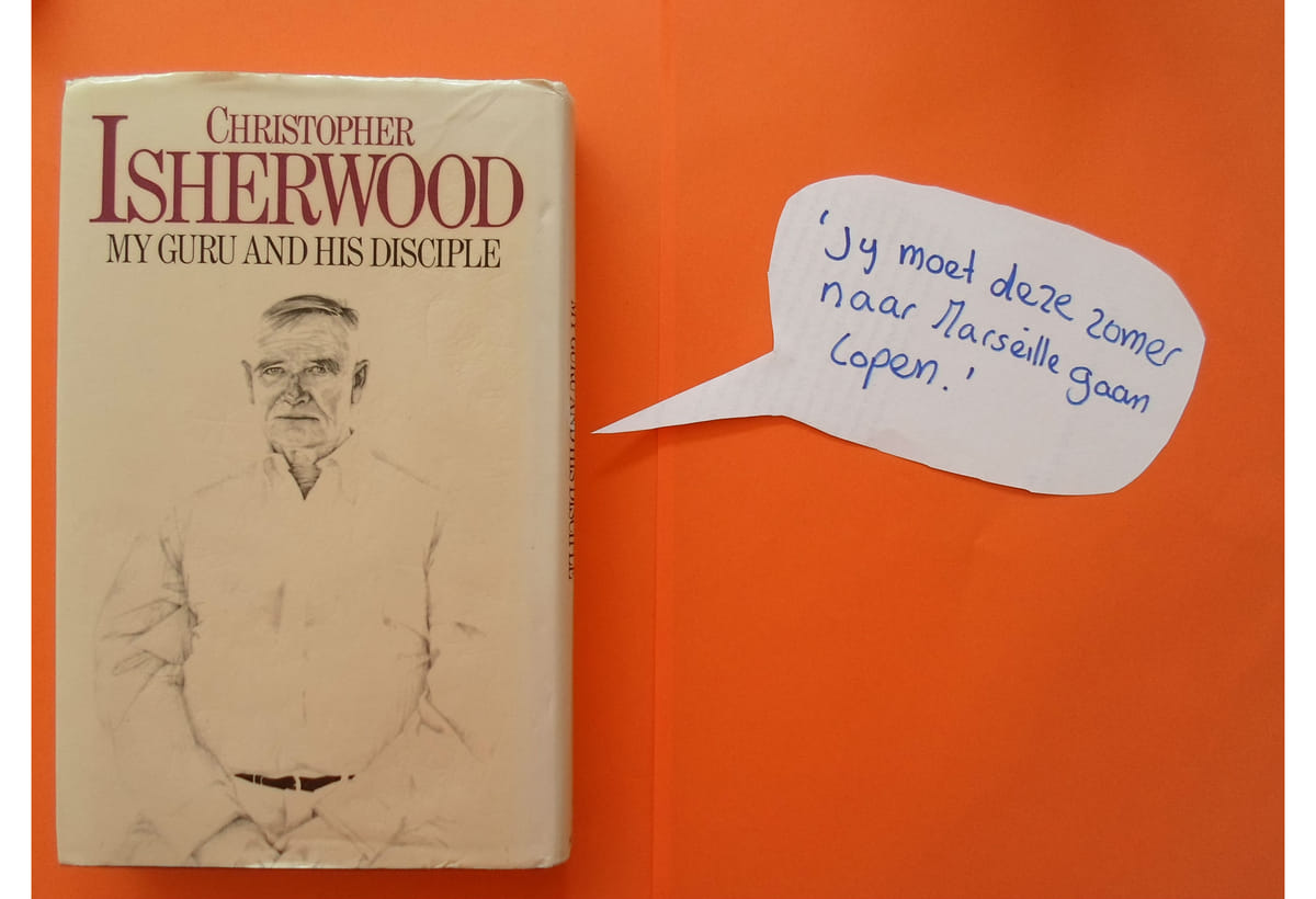 Tijdens een ritje in de trein viel ik in slaap met een boek van een van mijn helden, Christoper Isherwood, opengeslagen op schoot. Hardop hoorde ik een zinnetje in mijn hoofd: Jij moet deze zomer naar Marseille gaan lopen. Was het Christopher Isherwood die dit zei? En wat zou er gebeuren als ik deed alsof dat zo was?