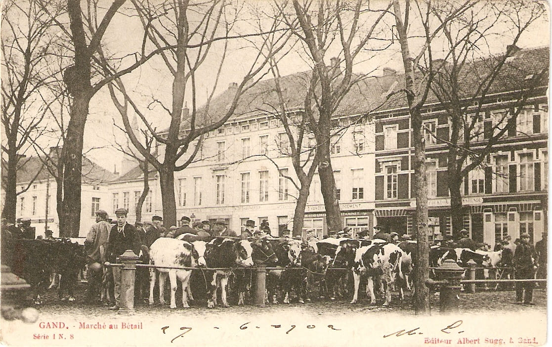 'Ik loop voorbij de ongeïnspireerd gebouwde woonwijken waar ooit de Gentse Beestenmarkt gevestigd was'. 'De Herinnering aan die plek draag ik in mij als een heftige geursensatie.'...' 'Wanneer hij later met mij naar reproductries keek en bij de beroemde geslachtte os van Rembrandt kwam, zei hij: 'dat is zo goed geschildert dat ge de stank van den beestenmarkt gewaar wordt'.'