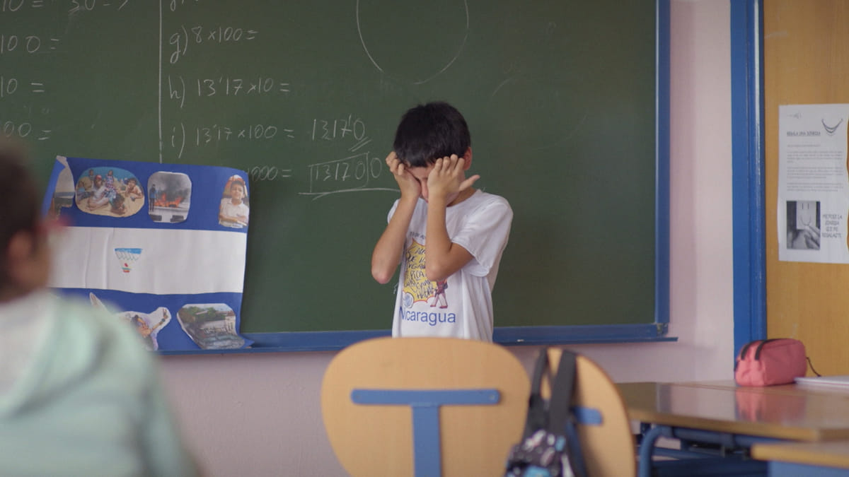 Toen we hier een paar maanden waren zei zijn leraar: hij begint zich goed aan te passen en hij maakt vrienden, maar zodra het over Nicaragua gaat, zie ik dat hij helemaal anders gaat staan, dat hij ineenkrimpt. We hadden het erover dat hij zijn spreekbeurt erover zou houden, ook om daar iets aan te doen. Dat werd een emotionele spreekbeurt. Eerst vroeg ik me af of we er wel goed aan hadden gedaan, maar ik denk toch dat het heel goed is geweest. Een soort keerpunt. Sindsdien gaat het er niet meer over in de klas. Iedereen weet nu hoe het zit, en wie hij is. Dus hij kan verder.’