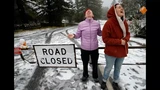 Deze foto is gemaakt op 24 februari 2023 in Berkely, California. Kegan Chay and Audra Barrios, zijn aan het sneeuwhappen in Tilden Regional Park.