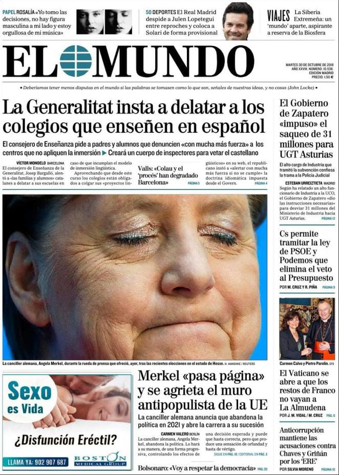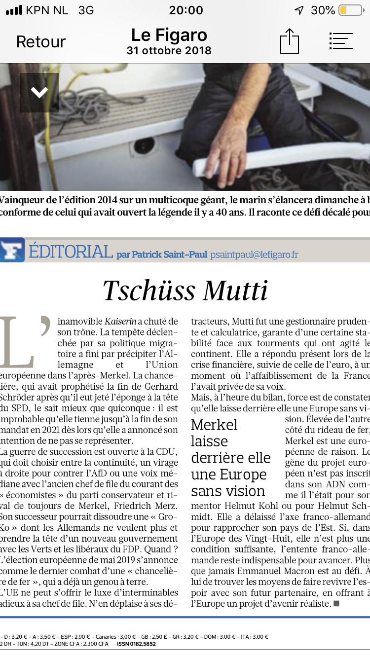 - NY Times: 2 Views of Angela Merkel’s Legacy: Stoic Leadership, and Economic Malpractice - 1 november 2018