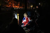 Deze foto is gemaakt door fotograaf Sebastien Bozon op 4 mei 2023 in Londen, Verenigd Koninkrijk, waar mensen daags voor de kroning van Charles kamperen langs de route van de koninklijke processie.