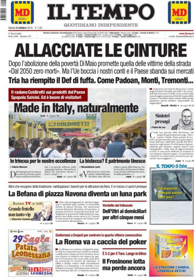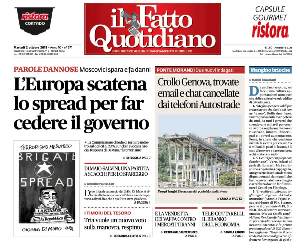 - Il Giornale: Spread, Salvini contro Juncker: "Parlo con persone sobrie..." - 2 oktober 2018