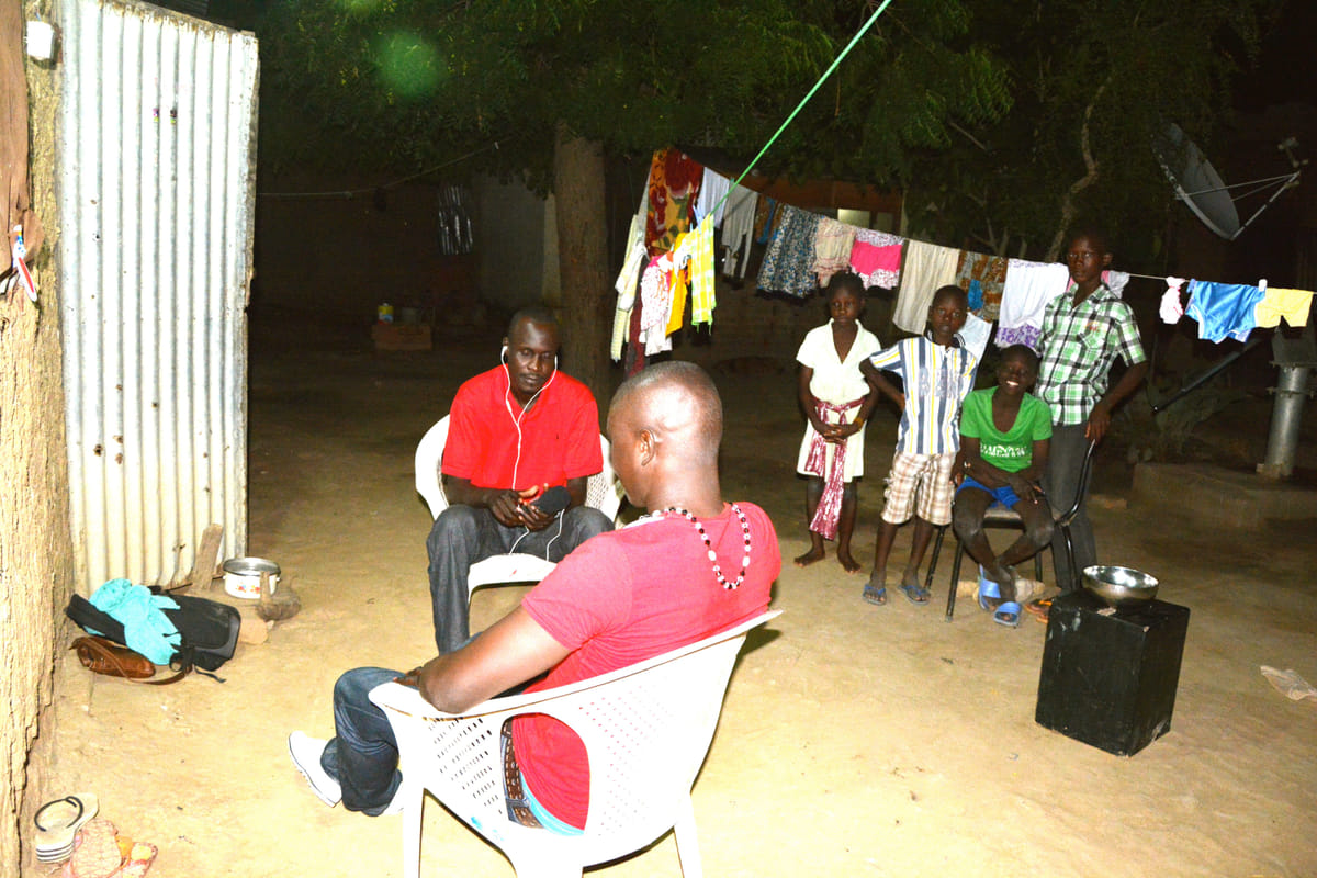 Ik deed de interviews in Chagoua samen met de star Croquemort wiens gedichten op muziek tot in de dorpen worden beluisterd, zowel door jong als oud. Zijn teksten gaan over misère, en over vriendschap. Hij roept de leiders van zijn land tot de orde. Hij wil aanzetten tot reflectie en het formuleren van kritiek. Zoals in dit nummer, waarin hij spreekt over de manier waarop Europa zich bemoeit met Afrika. Hij benadrukt het dubbele gezicht van de jeugd in Afrika: slachtoffer, maar ook de enige groep die zich daaruit kan en wil vechten. Onze jonge geïnterviewde is fan.