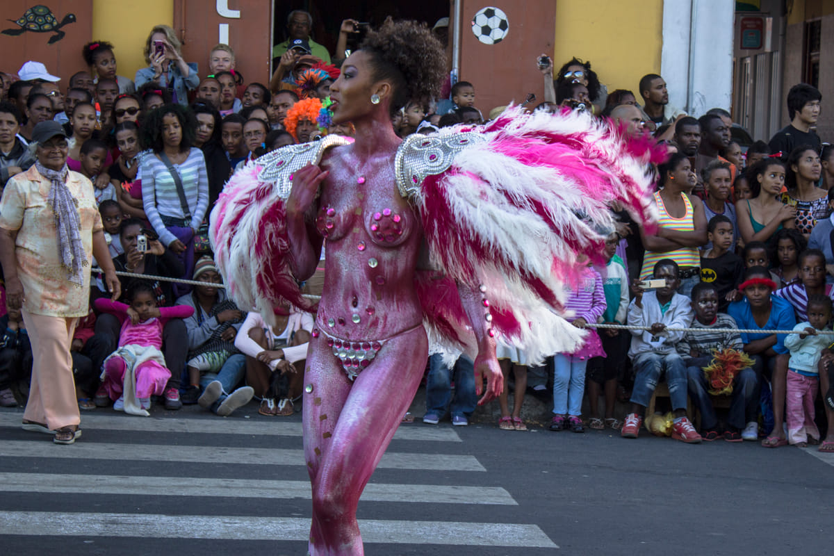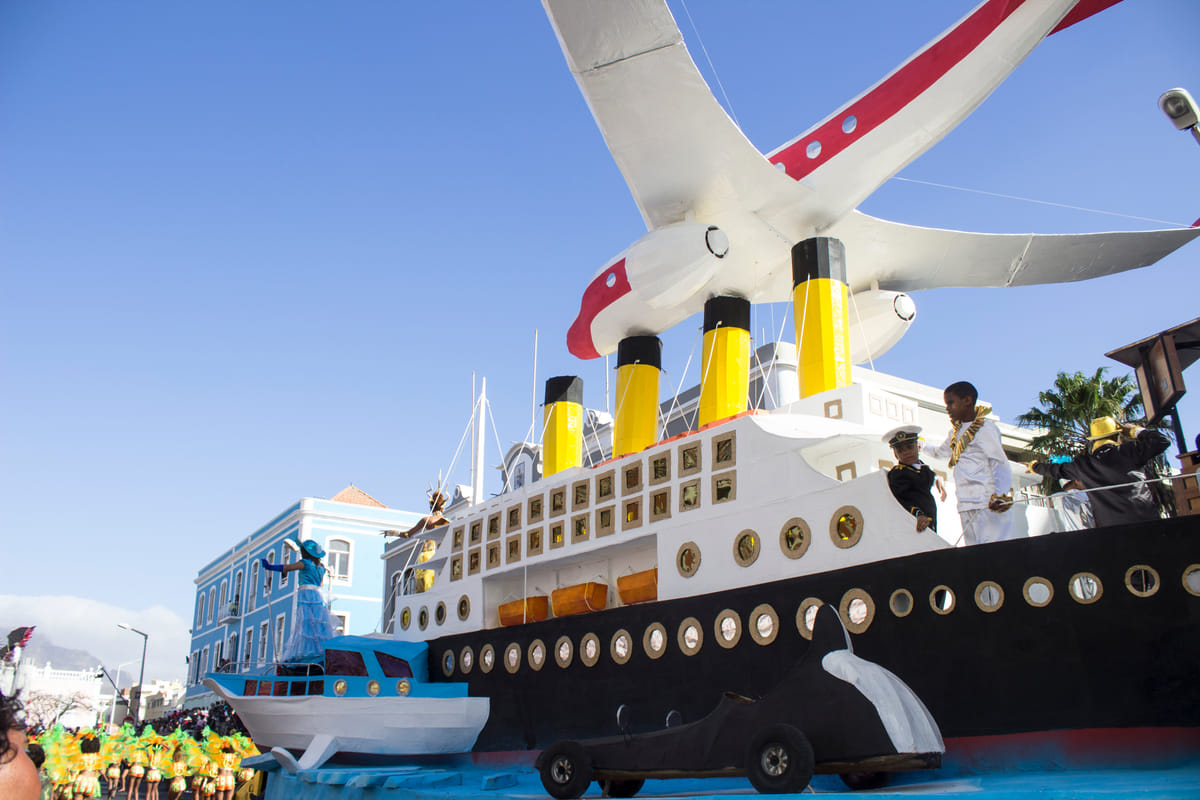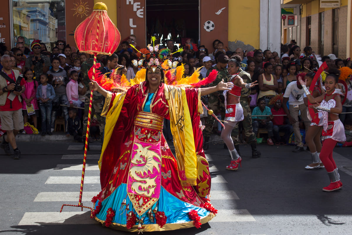 Wekenlang hebben deze Kaapverdianen uitgekeken naar deze dag: de dag waarop ze op hun mooist kunnen zijn en hun prachtige − met de hand − gemaakte kostuums trots kunnen laten zien. Kleuren worden afgewisseld, evenals de verschillende thema’s. Een praalwagen vol elegante oceanische figuren komt in navolging van een stoet Chinese mannen met hoge kragen en glinsterende diamanten, die in kordate en krachtige stappen voorbijlopen. Een bijzondere uitzondering op al deze kleurexplosies zijn de mandinga’s; volledig zwart geverfde mannen en vrouwen die een inheemse traditie tot uiting brengen in hun instinctieve rauwe dans.