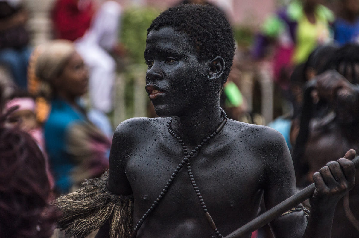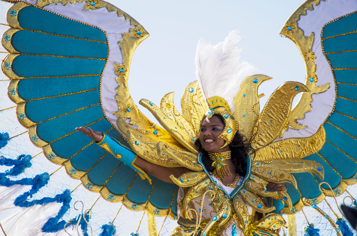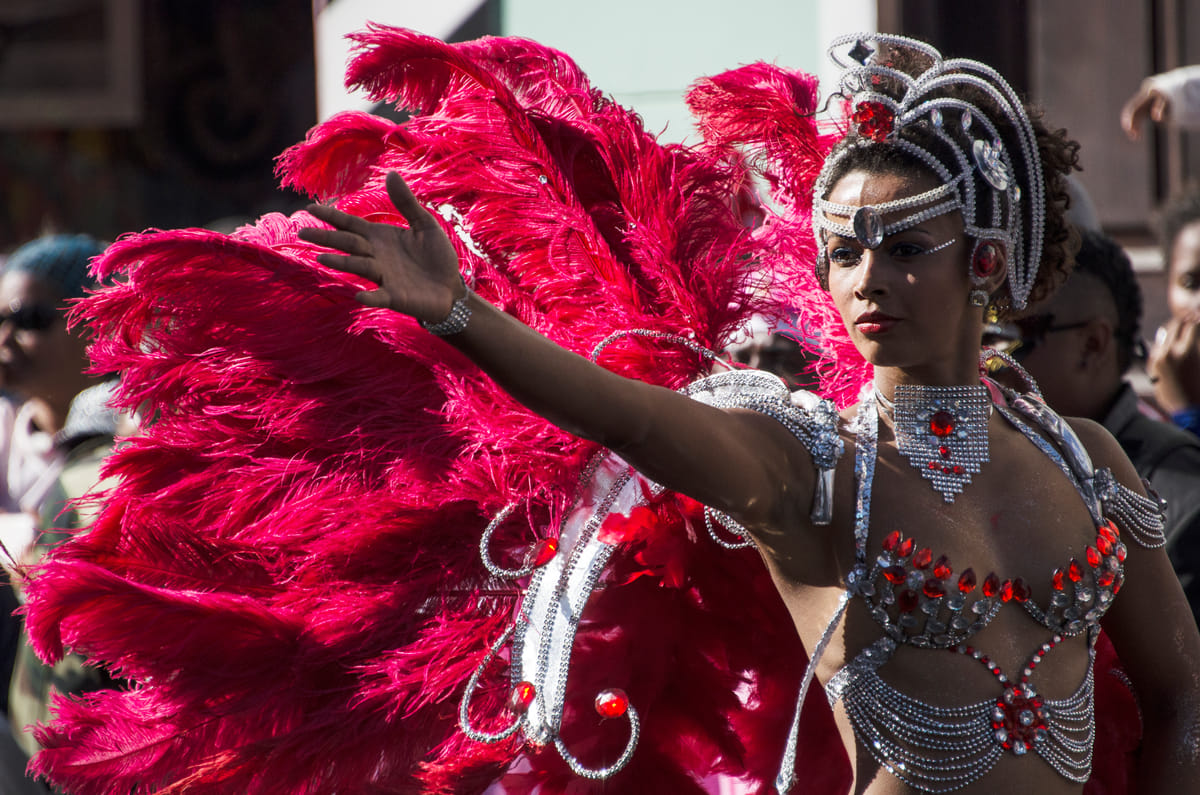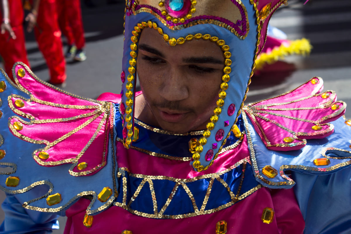 Felgroene kostuums verlichten de smalle straten van Mindelo, São Vicente, Kaapverdië. Ogen zijn nog niet gewend aan deze verzadiging, of de volgende stoet vol knalroze gekleurde mensen komt aangelopen. Dansende vrouwen, kinderen en stoere mannen paraderen langs de caranavals-hongerige menigte aan de kant; glimlachend, wuivend, knipogend en verleidelijk dansend. De toeschouwers staan als sardientjes in blik op balkonnetjes, zitten in de dakgoot en op aangedragen tribunes. De nationale feestdag van dit kleine eiland is een enorme happening.