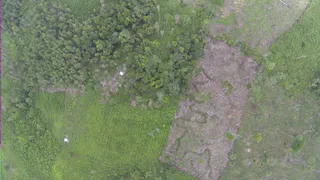 Bekijk hier een aantal voorbeelden van de foto's die daar door de drone gemaakt zijn. Ze laten een gedetailleerd beeld zien van het gebied waarin overduidelijk een groot aantal bomen zijn gekapt. In een vlucht worden honderden van deze foto's verzameld en en met software tot een grote fotokaart gemaakt van ongeveer 500 hectare. Deze fotokaart kan worden "geo-referenced": de exacte lokatie in de fysieke ruimte kan worden bepaald aan de hand van de meetgegevens.