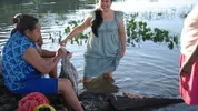 Helaas is de cacique (opperhoofd) naar de stad gereisd. Aan hem moet ik toestemming vragen om te filmen. Ja hij komt terug, maar niemand weet wanneer. Dat wordt dus wachten. Linda besluit me mee te nemen naar de vrouwen die bij het meertje hun was doen en waar hun kinderen vrolijk in rond spetteren.