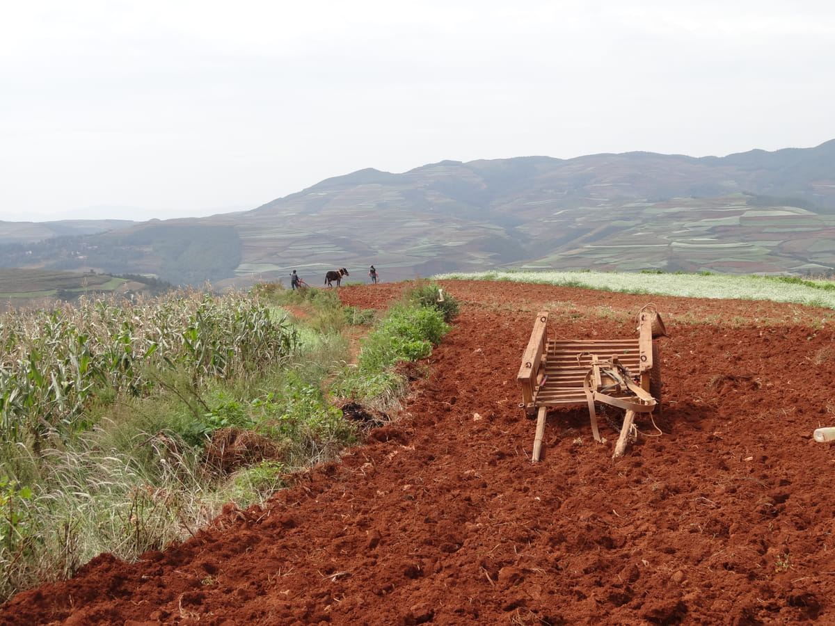 In China’s zuidwestelijke provincie Yunnan ligt op gemiddeld 2.500 meter hoogte het nog weinig bezochte Rode Aarde-gebied, Hongtudi, waar boeren op hun eigen akkertjes verschillende gewassen verbouwen als koolzaad, gerst, mais en aardappelen. Dat levert landschappelijk een kleurrijke lappendeken op, waaronder met witte bloemetjes bedekte aardappelvelden in plaats van groene, goudgele of spiegelende rijstterrassen waar Yunnans berglandschap beroemd om is.