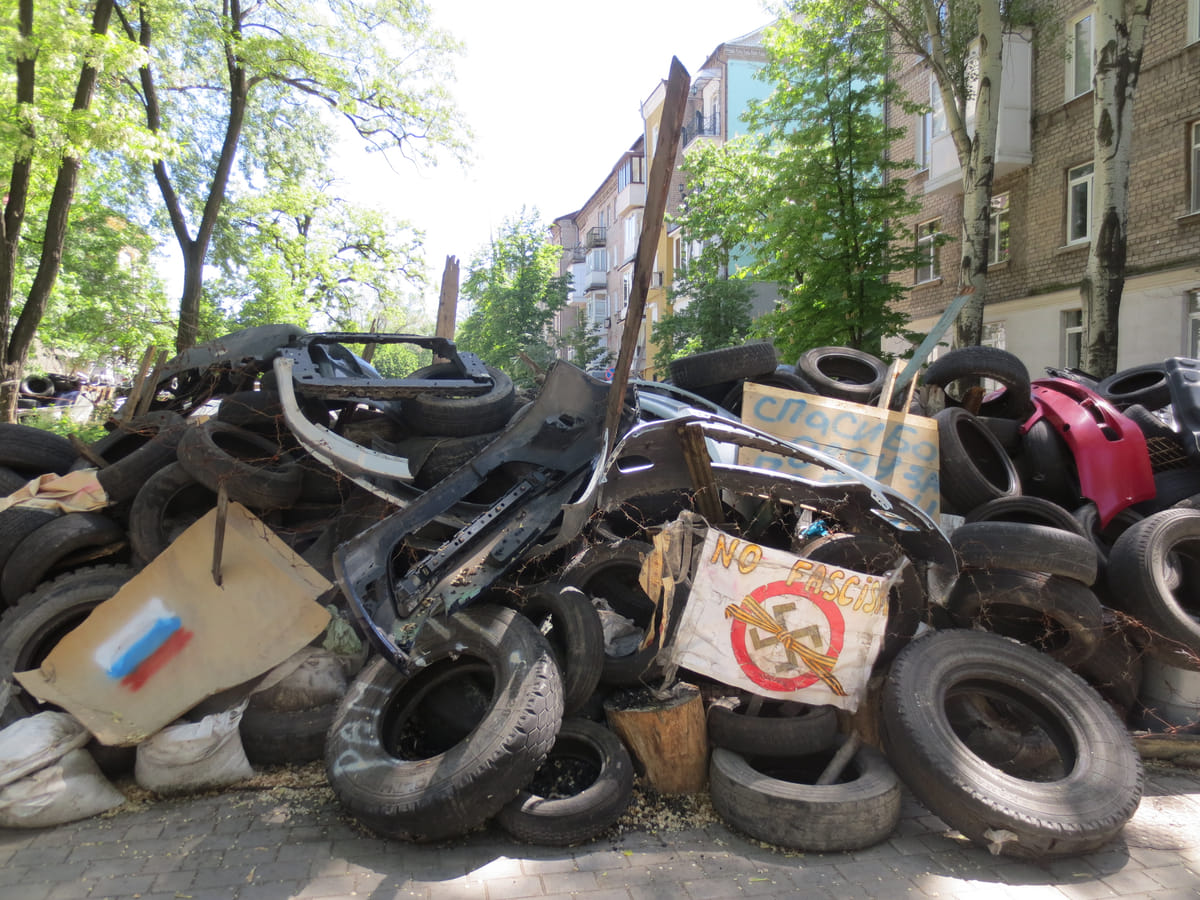 De accreditatie is nodig. Wie naar Slavjansk, honderd kilometer ten noorden van Donetsk, wil om de schietpartijen tussen het Oekraïense leger en de separatisten te aanschouwen, moet langs verschillende controleposten, waaronder die van de separatisten. Zonder accreditatie laten ze je niet door. Ook bij het overheidsgebouw blijkt het papiertje onmisbaar. Na het nemen van foto's van de barricades, bestaande uit autobanden, prikkeldraad, tafels, stoelen en deuren, rond het gebouw komen meteen mannen aangelopen om te vragen of ik daar bevoegd voor ben.
