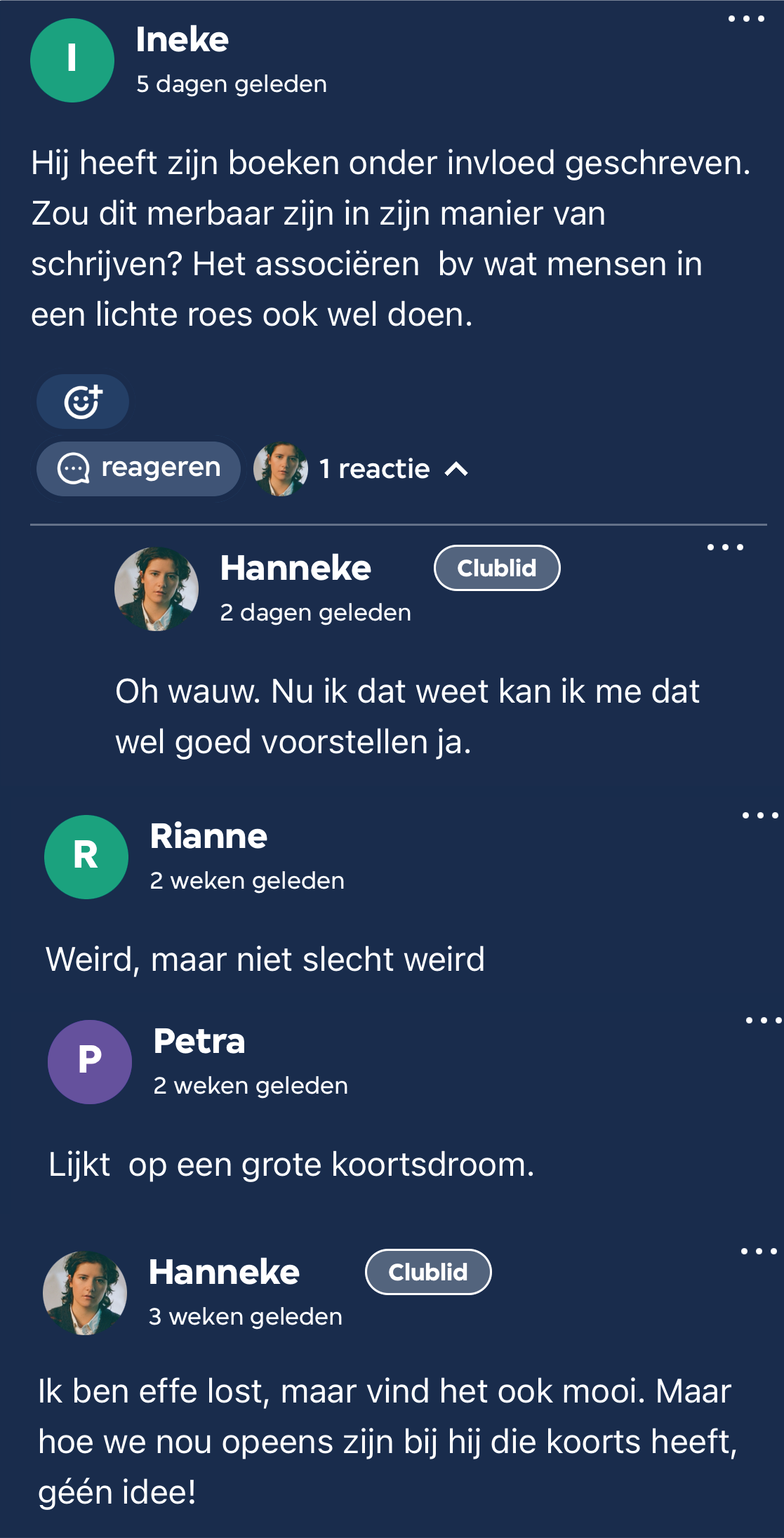 Sommige lezers hebben helaas iets meer moeite met het boek en de schrijfstijl, zoals ook ons clublid Noah: “Ik probeer soms iets te hard logica te vinden in verhalen, waar dit niet de bedoeling is.”