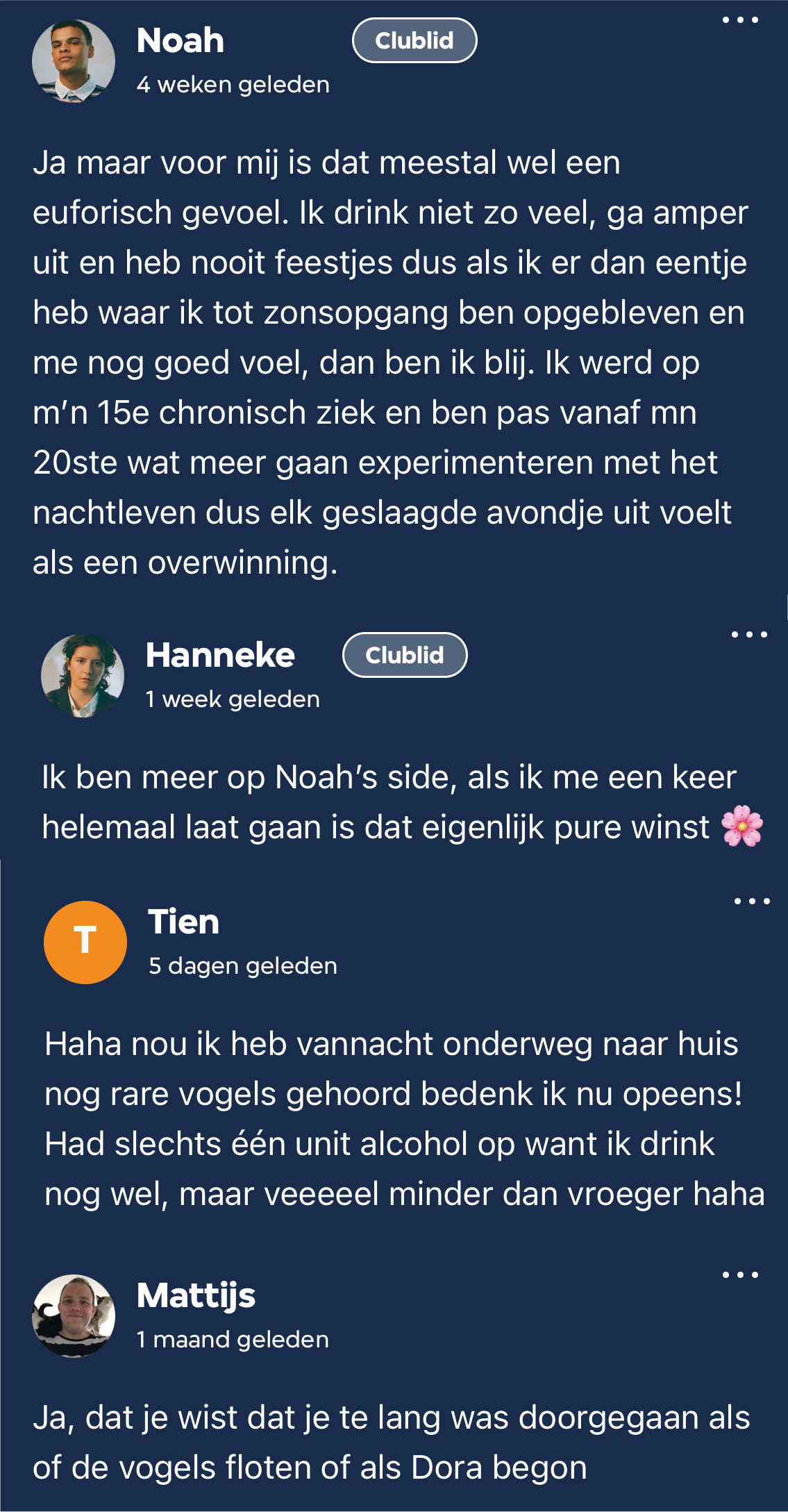 Voor Ray zelf is de ervaring van de nacht drastisch veranderd. Vroeger genoot hij uren van feesten met drank en drugs, maar nu is zijn perspectief volledig omgekeerd. “Als dronkenlap heb ik ervaren dat de tijd stilstaat als je drinkt”, en dit kwam hem niet ten goede. Tegenwoordig is hij als vader helemaal gestopt met alcohol en drugs, en is hij productiever dan ooit. “Als je nu iets met mij wil doen, ga dan maar mee sporten ‘s ochtends”, want een avond in de club met mensen om hem heen die hem niet boeien, drinken, en met consumptie in zijn oor schreeuwen ‘we moeten weer eens chillen!’: dat gaat voor Ray niet meer gebeuren.