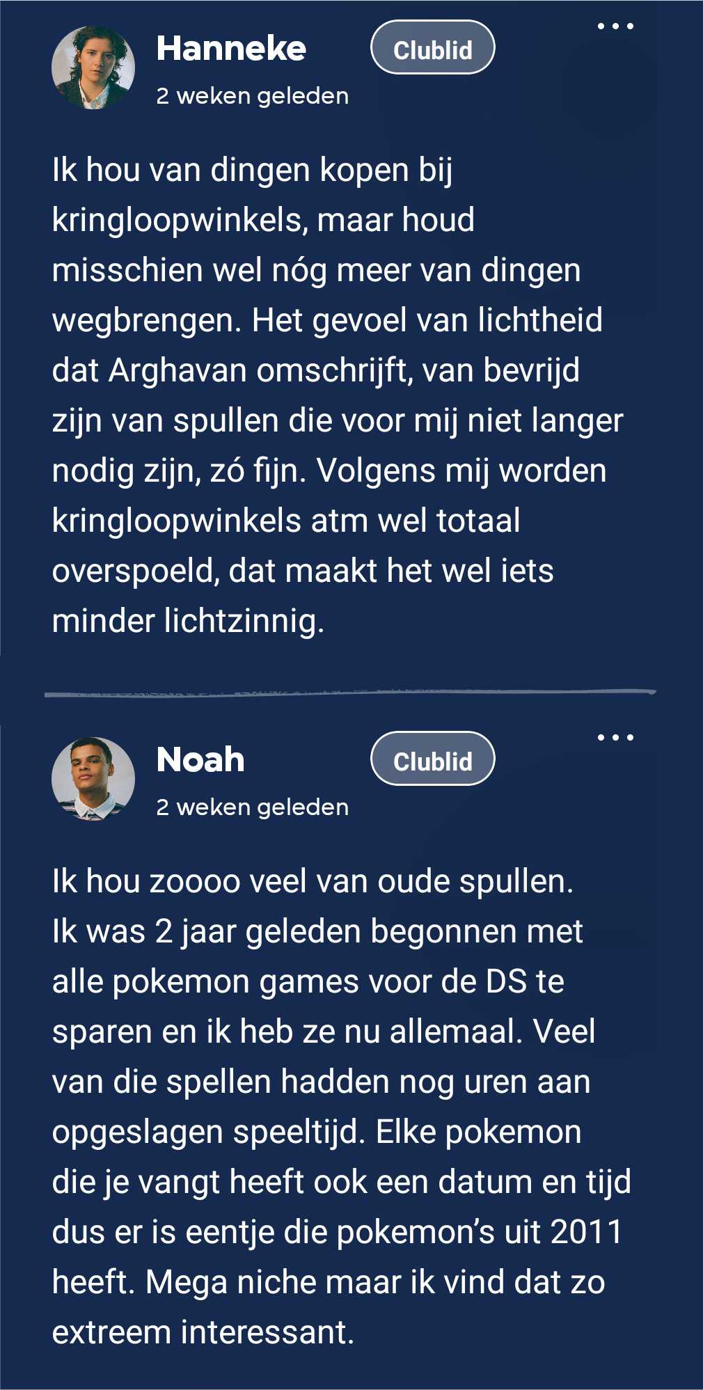 Een ander thema in dit boek is de kringloopwinkel waar de hoofdpersoon werkt. Arghavan denkt veel na over de spullen die ze binnenkrijgt en de mensen van wie ze zijn geweest. Naaz ging in deze video in gesprek met Hella de Kok over haar kringloopwinkel. Onze clubleden houden ook van kringloopwinkels, Hanneke vooral van “het gevoel van lichtheid” die ze heeft als ze spullen weggeeft, en Noah van het verzamelen van oude spullen uit de kringloop. Naaz werd er door dit boek aan herinnerd dat er ook mensen zijn die de kringloop nodig hebben om kleren te kunnen kopen, en dus niet alleen maar omdat het leuk is om tweedehands spullen te verzamelen.