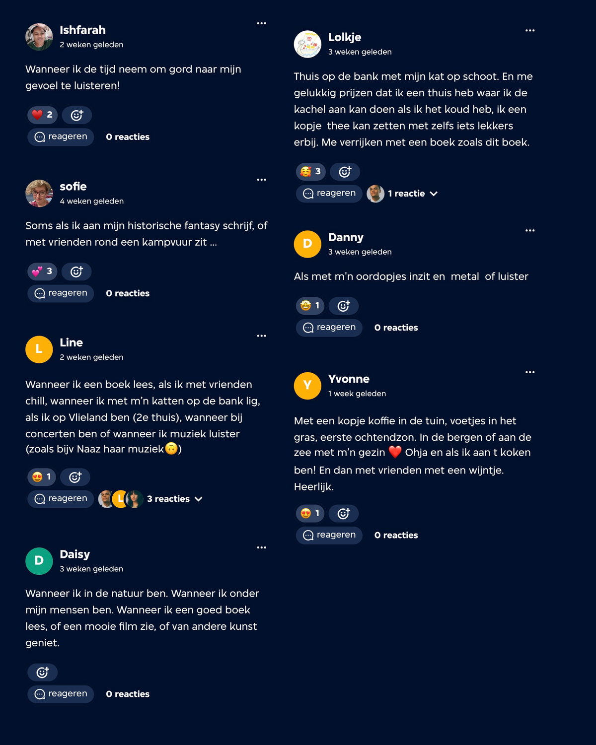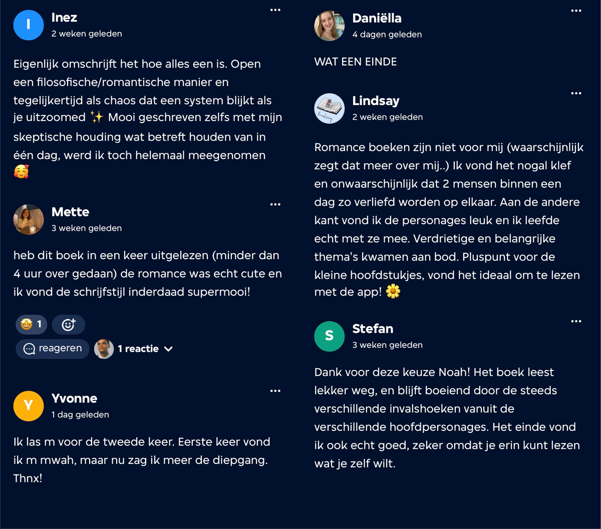 Aan het einde van het boek delen veel lezers hun leeservaring: