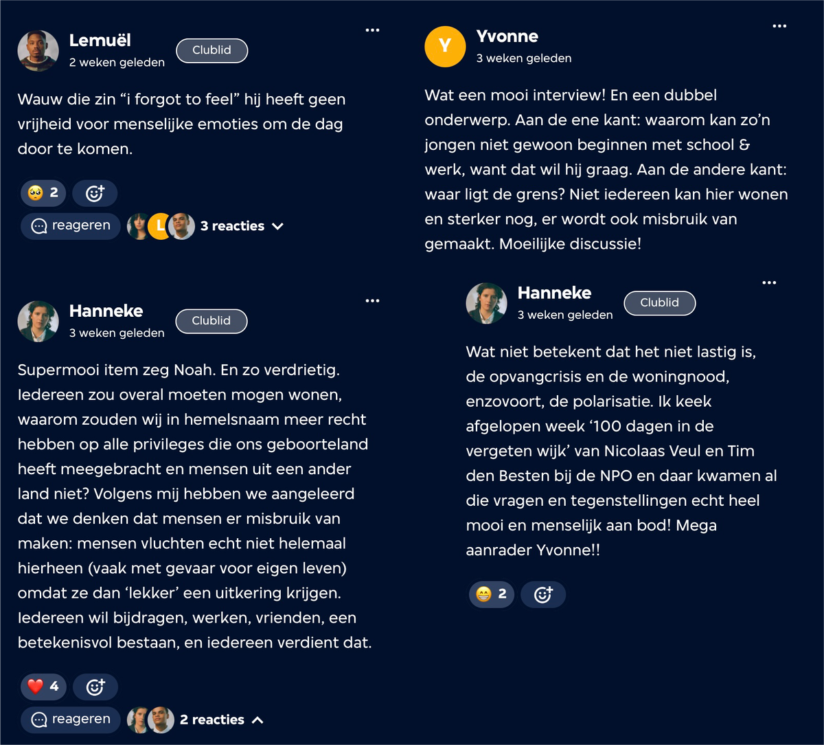 In de app maakt het item veel los, zowel bij de lezers als de clubleden, en ook in de meetup delen velen hun verhaal.