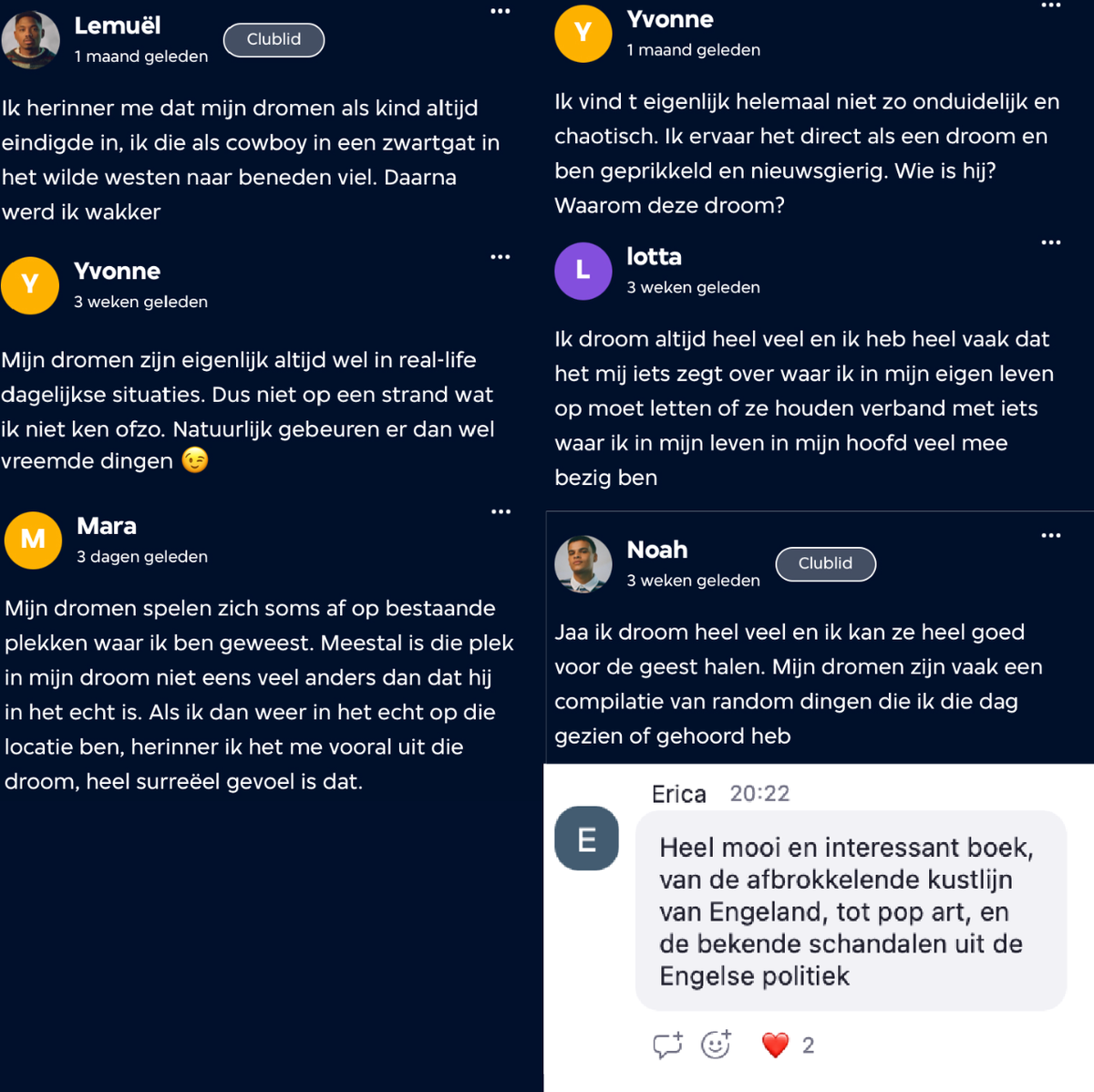 Herfst begint met een poëtische en vage ‘droom’ van Daniel, waarin hij naakt aanspoelt op een strand. Hanneke wist al dat het lastig kon zijn om door dit begin van het boek heen te komen: “Ik weet nog dat toen ik dit voor het eerst las, ik to-taal niet door het begin heen kwam,” vertelt ze de lezers in de kantlijn. Gelukkig heeft ze doorgezet, want uiteindelijk werd Herfst één van haar favoriete boeken. Clublid Noah gaf ook toe dat Herfst voor hem andere kost is dan normaal: “Ik ben het gewend dat een verhaal tussen de lijntjes blijft, en dat was in dit verhaal totaal niet.” Gelukkig hielp de uitleg in de kantlijn hem, “Normaal gesproken zou ik dit niet hebben afgelezen. Maar ik heb ook geleerd: het is oké als je bepaalde dingen niet snapt.” Hanneke beëindigt haar eerste berichtje in de kantlijn rooskleurig: “Dus mocht je nu denken, oh mijn god, wat is dit raar en abstract, alles ligt nog open! Wanhoop niet!” En deze hoopvolle woorden konden de lezers goed gebruiken!