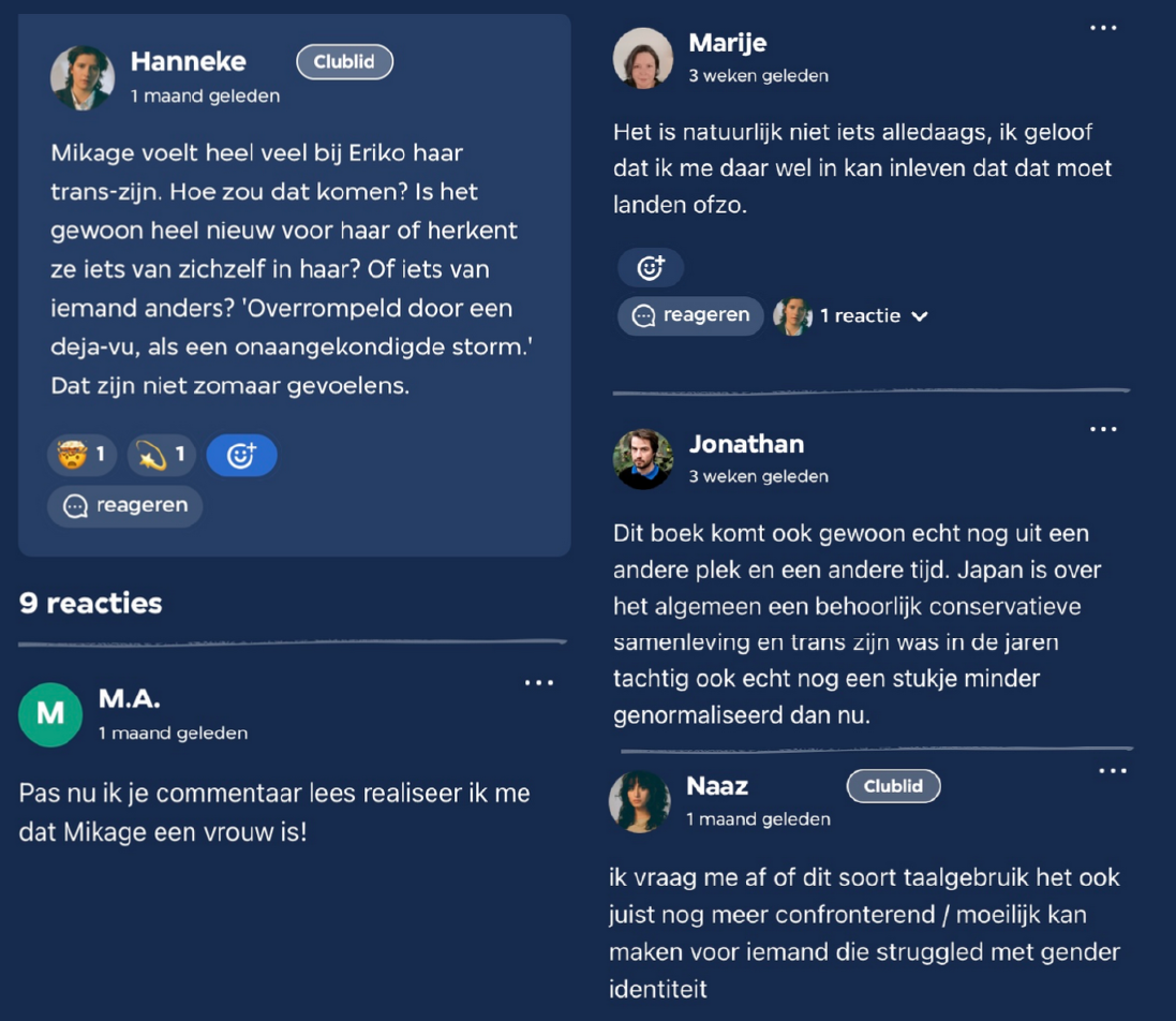 Het achtste boek van Club Lees, Kitchen van Banana Yoshimoto, zit erop! Van 10 juni tot 15 juli 2024 was het boek te lezen in onze app. Clublid Hanneke koos het boek en maakte annotaties, de app-gebruikers en de andere clubleden lazen mee. Op 10 juli vond de online meetup plaats, waar de clubleden en de lezers met elkaar in gesprek gingen. We zetten de mooiste leesmomenten op een rijtje.