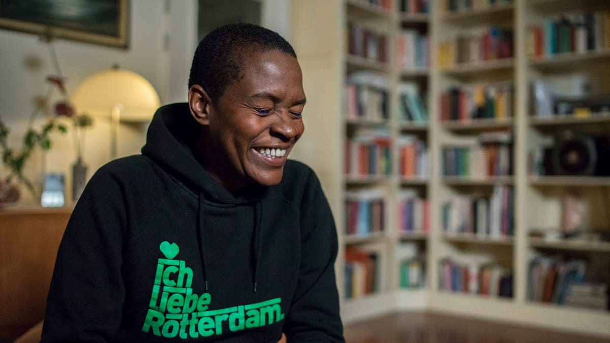 ‘Daarna volgden roerige jaren. Ik ging housen, danste op feesten, stond model voor kunstenaars en werkte achter de bar in coffeeshops. Ik probeerde twee studies: geschiedenis en sociologie. Voor geschiedenis was ik ronduit te dom. Na zes colleges over Maarten Luther heb ik de legendarische vraag gesteld: “Maar Maarten Luther is toch een zwarte man?” De docent beschouwde mij als een lost case.
