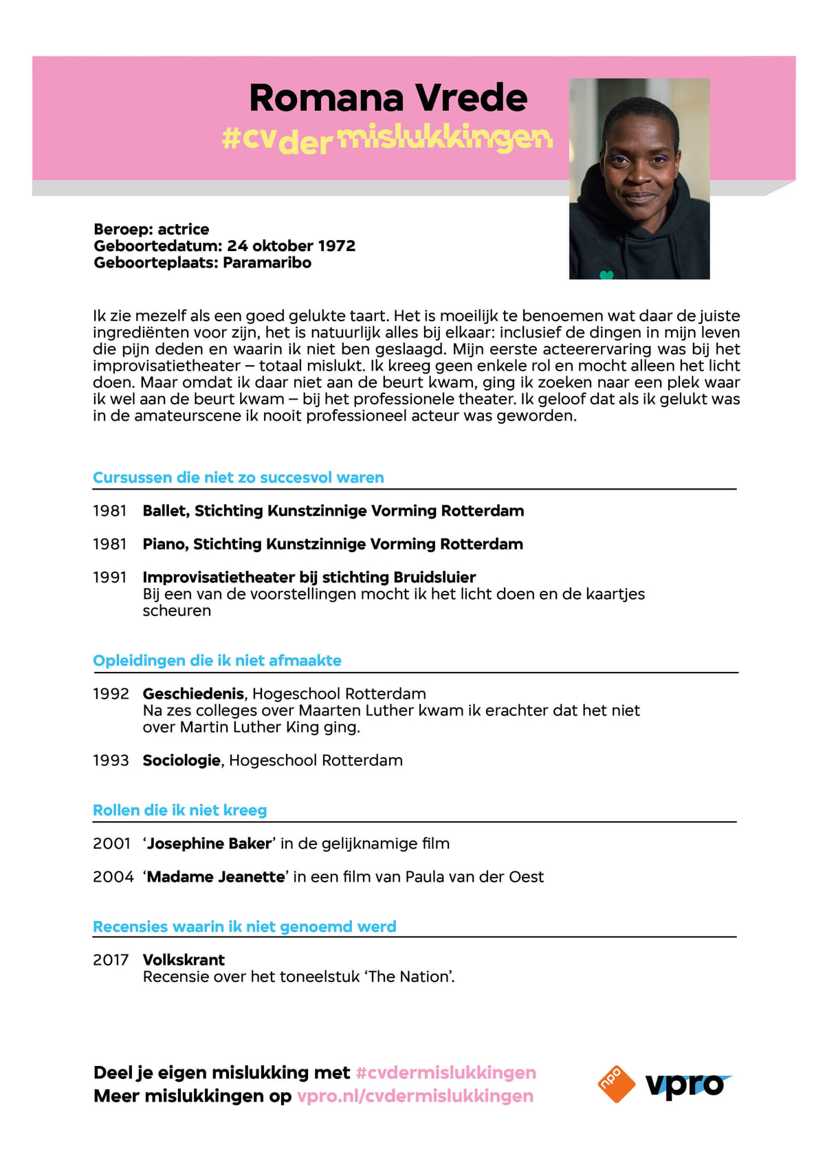 Romana Vrede over haar cv der mislukkingen